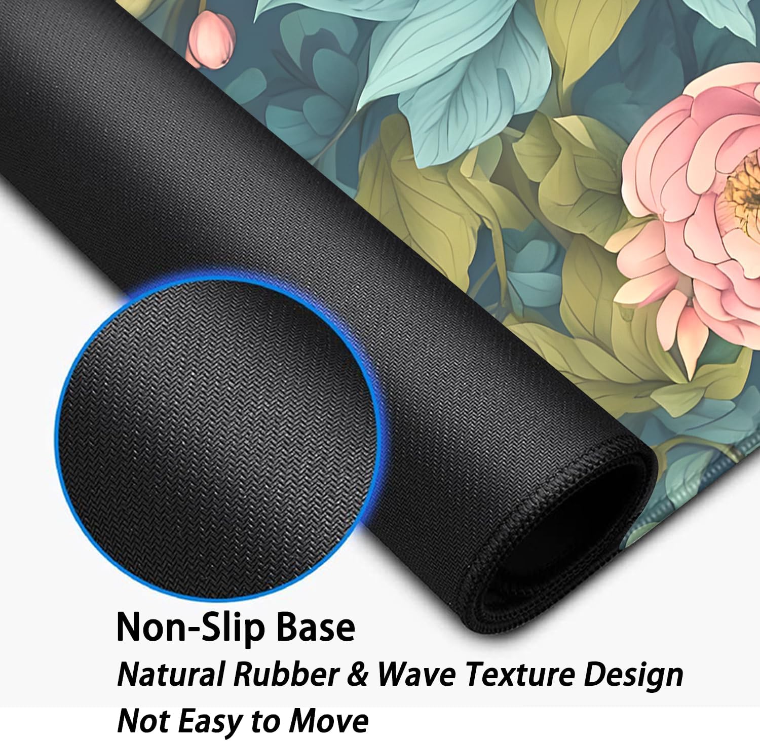 Colorful Flowers Desk Pad Mouse Pad,Large Floral Mouse Mat with Stitched Edges,Non-Slip Rubber Base Mousepad for Office PC Keyboard Laptop and Home Work Desk Mat(27.5X11.8 in)