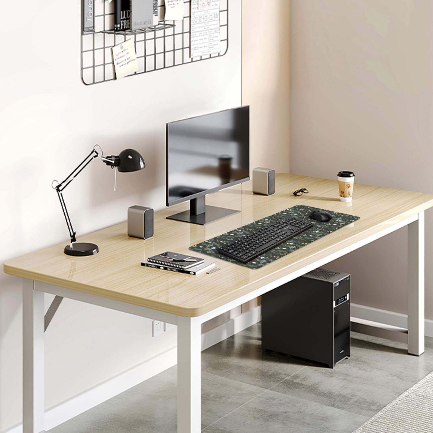 Green Plants Flowers Desk Pad Mouse Pad,Large Floral Mouse Mat with Stitched Edges,Non-Slip Rubber Base Elegant Mousepad for Office PC Keyboard Laptop and Home Work Desk Mat(27.5X11.8 in)