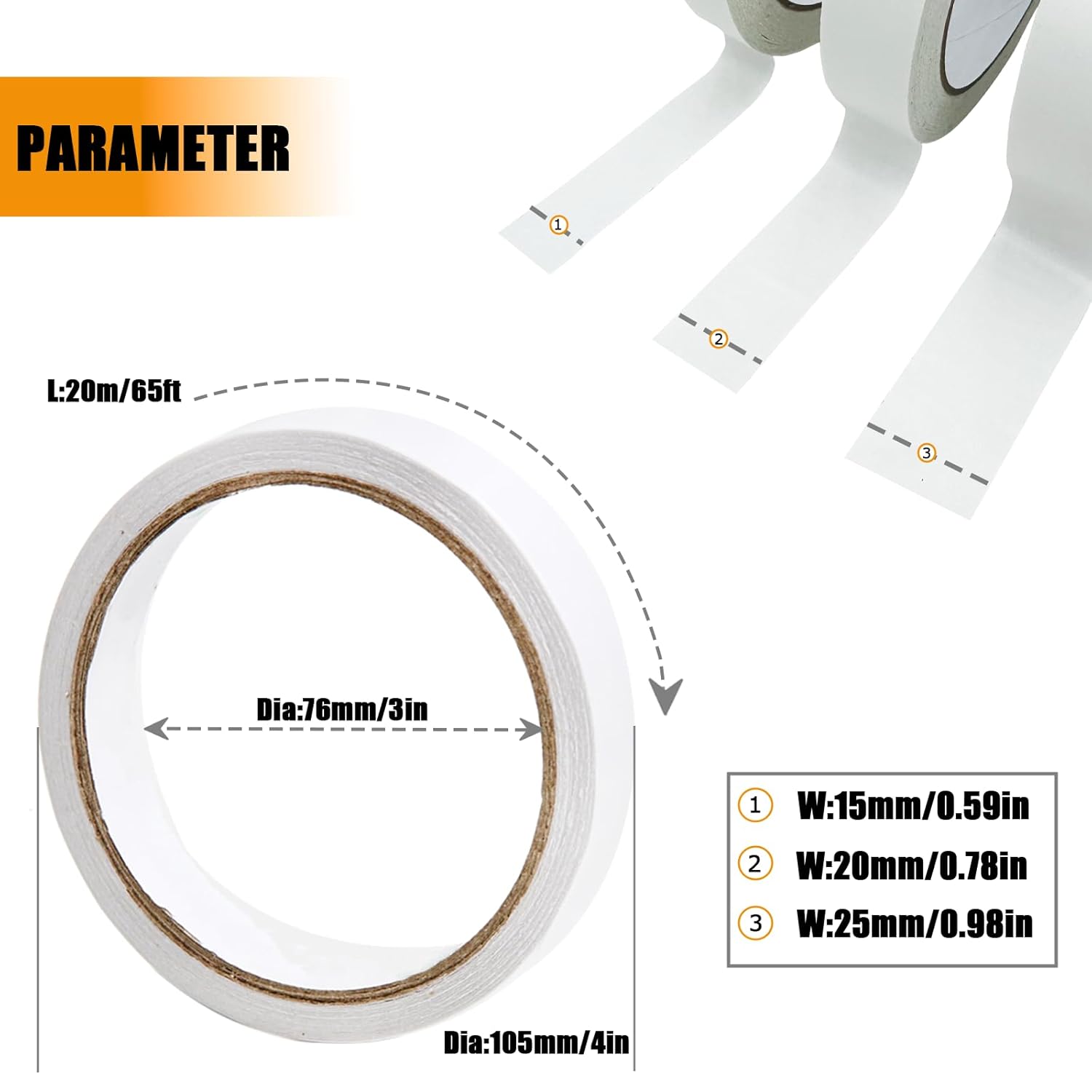 - What You Get? You will get 3 specifications of the double sided hem tape: 0.59in X 65ft double sided scrapbook stickers rolls *2pcs, 0.78in X 65ft paper tape *2pcs, 0.98in X 65ft craft double sided tape heavy duty *2pcs. And if you have any questions about our such double-sided tape(cinta doble cara para manualidades), welcome to left us message any time any day. We are here for you, 24 hours 7 days!