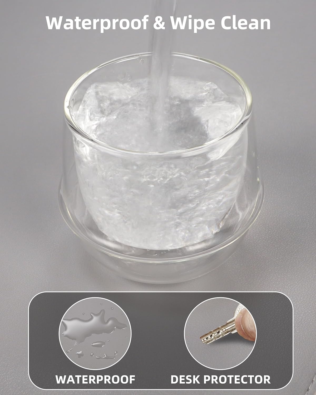 - Waterproof & Easy to Clean: Durable PU leather for the upper use side, just use cloth to wipe it, very easy to clean, wet cloth would be prefer if there are too much dirt on the desk protectors.