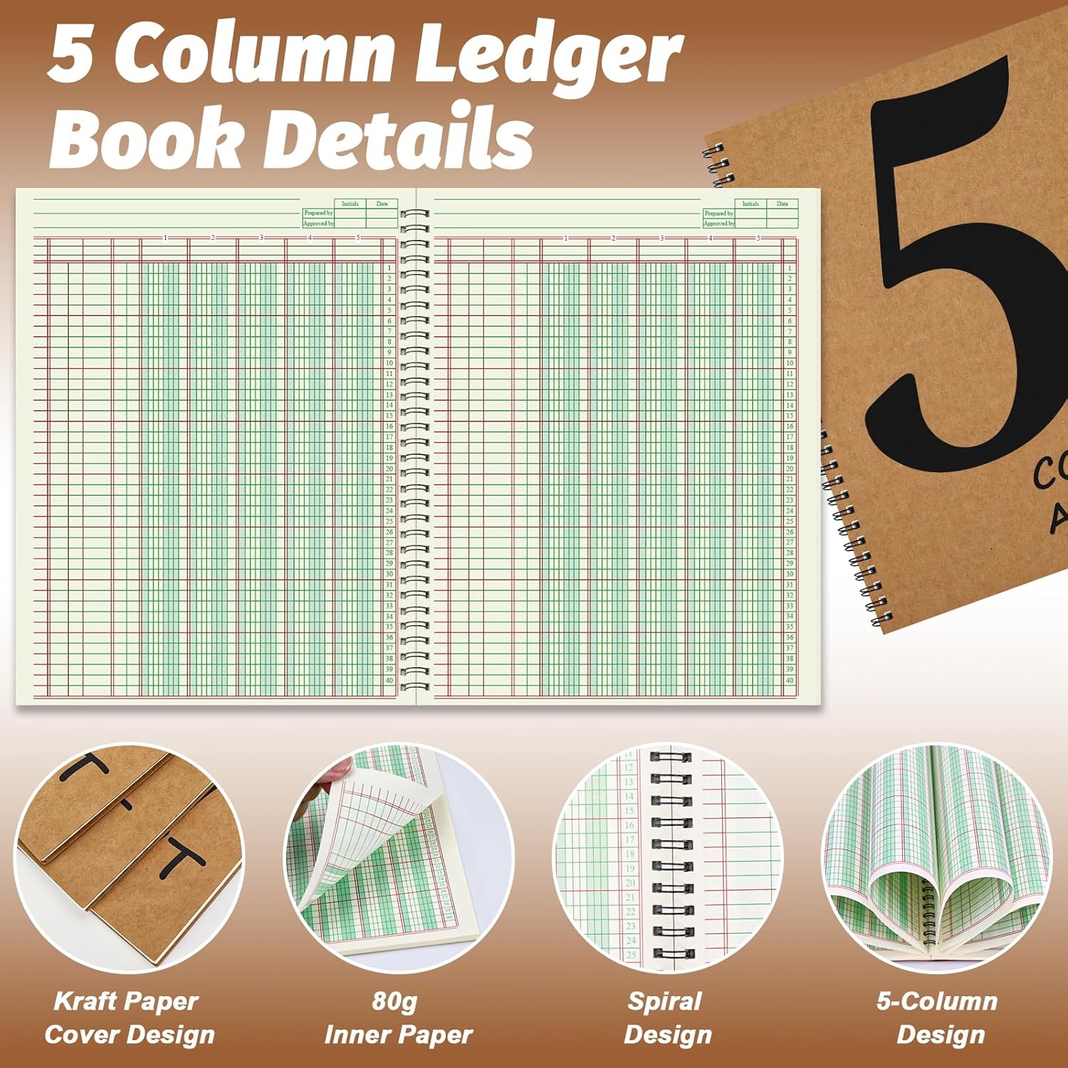 - 5-column ledger with plenty of pages:Each ledger measures 8.5x11 inches and provides 50 sheets (100 pages in total), which can meet your needs of recording different accounts and improve the clarity and efficiency of financial records. 5-column accounting books are suitable for office, study or home accounting.