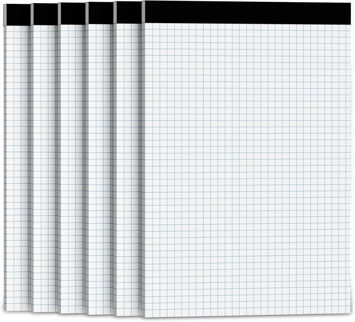 Graph Paper 8.5 x 11, 6 Pack, 4x4 Graph Ruled, Grid Paper 8-1/2 x 11, Blueprint Quadrille Pad 8.5'' x 11'', Easy Tear Off Graph Paper Pad White Grid Notebook, White Draft Paper 25 Sheets/Pad