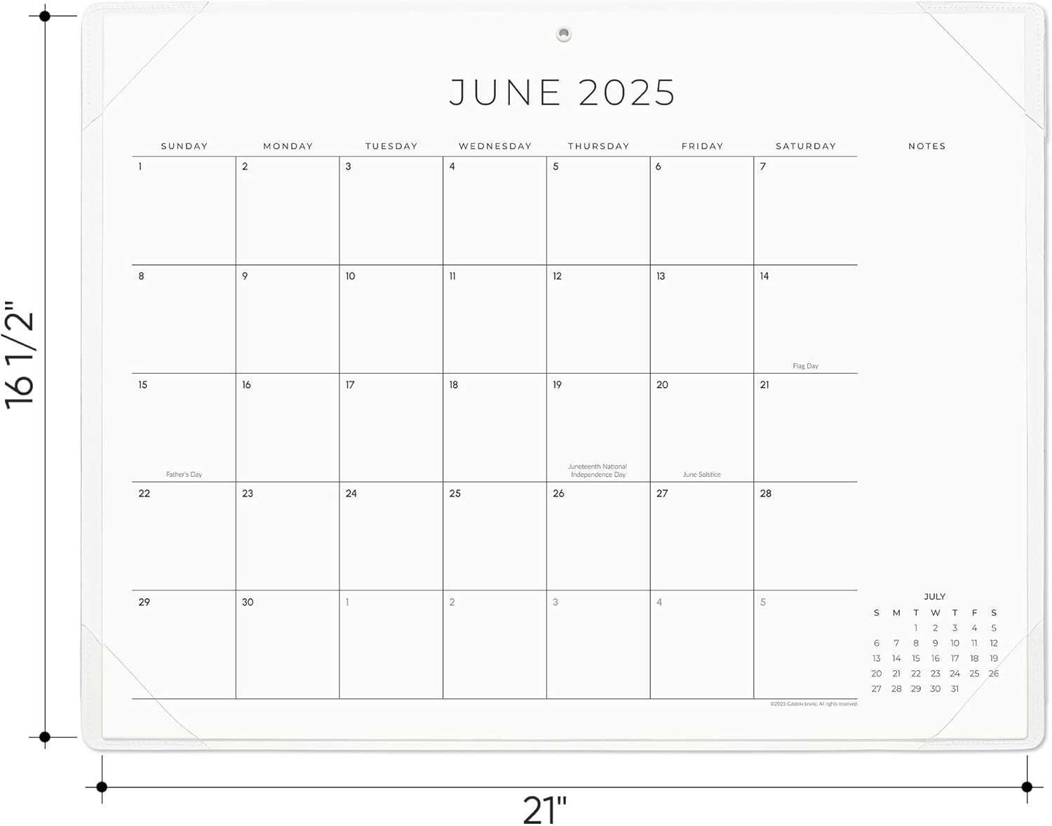 Cabbrix Simplified Desk Calendar 2025-2026, 21x16-1/2 inch Large Monthly Desktop Calendar with Notes Until to June 2026 for Home Office School (White)