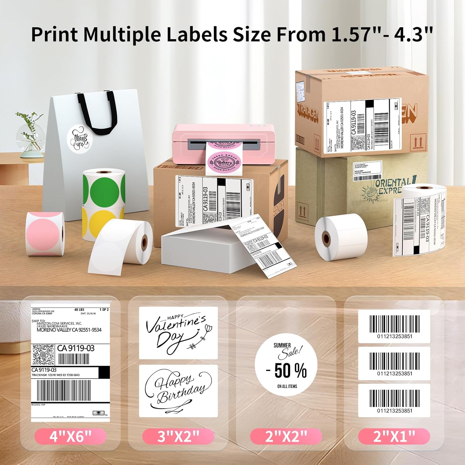 Bluetooth Thermal Shipping Label Printer, 4X6 Inkless Label Machine for iOS, Android, Laptop, Wireless Printer for Small Business, Compatible with Amazon, UPS, Shopify, Pink