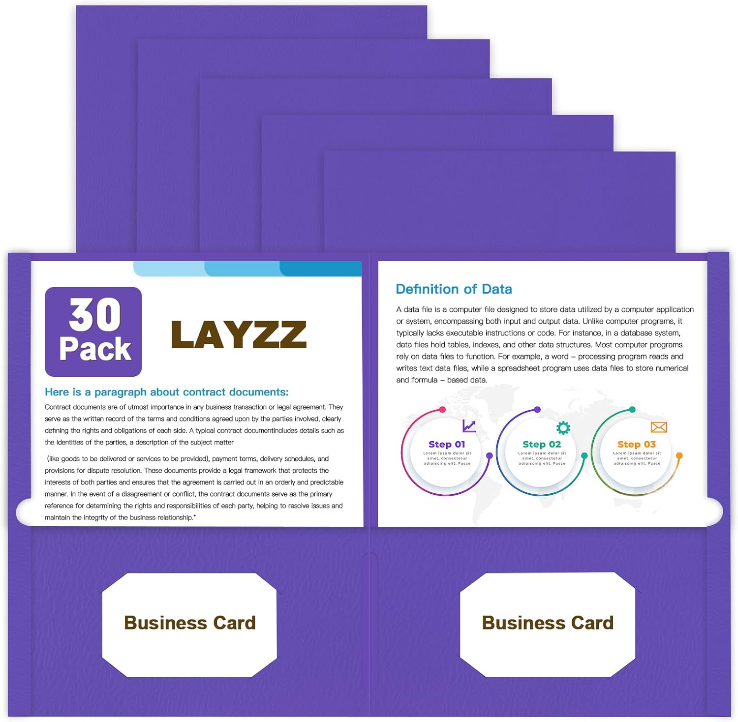 - Large Capacity: 30 pack pocket folder has two deep pockets that hold over 50 sheets of paper each. 2 business card slots for instant access to important contacts without the need for a separate business card holder.