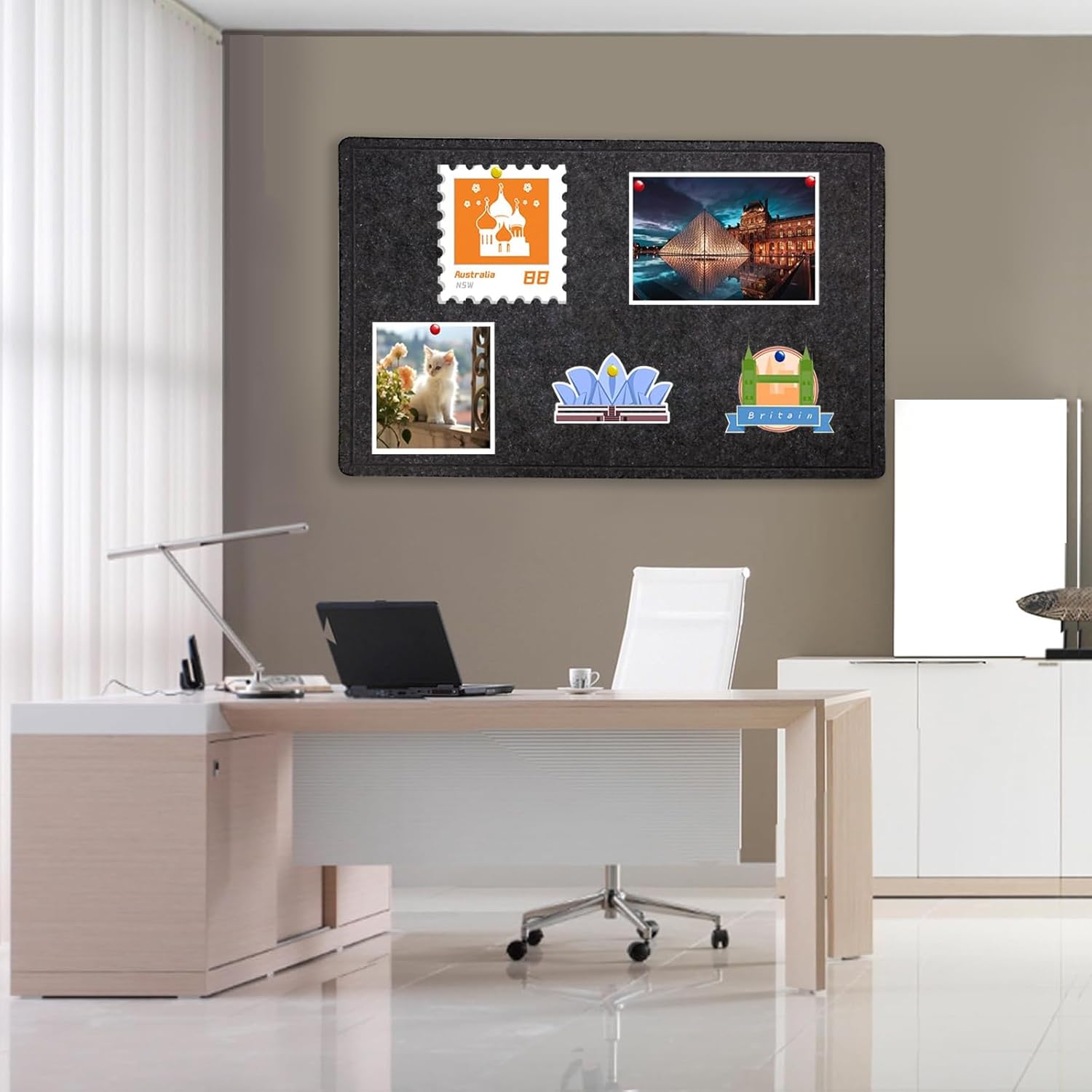 Bulletin Board - 23.5 x 17.5 inches Decorative Felt Pin Board - Cork Board Alternative for Wall - Foldable Photo Board Self-Adhesive Prayer Board with 20 Pushpins - Dark Gray