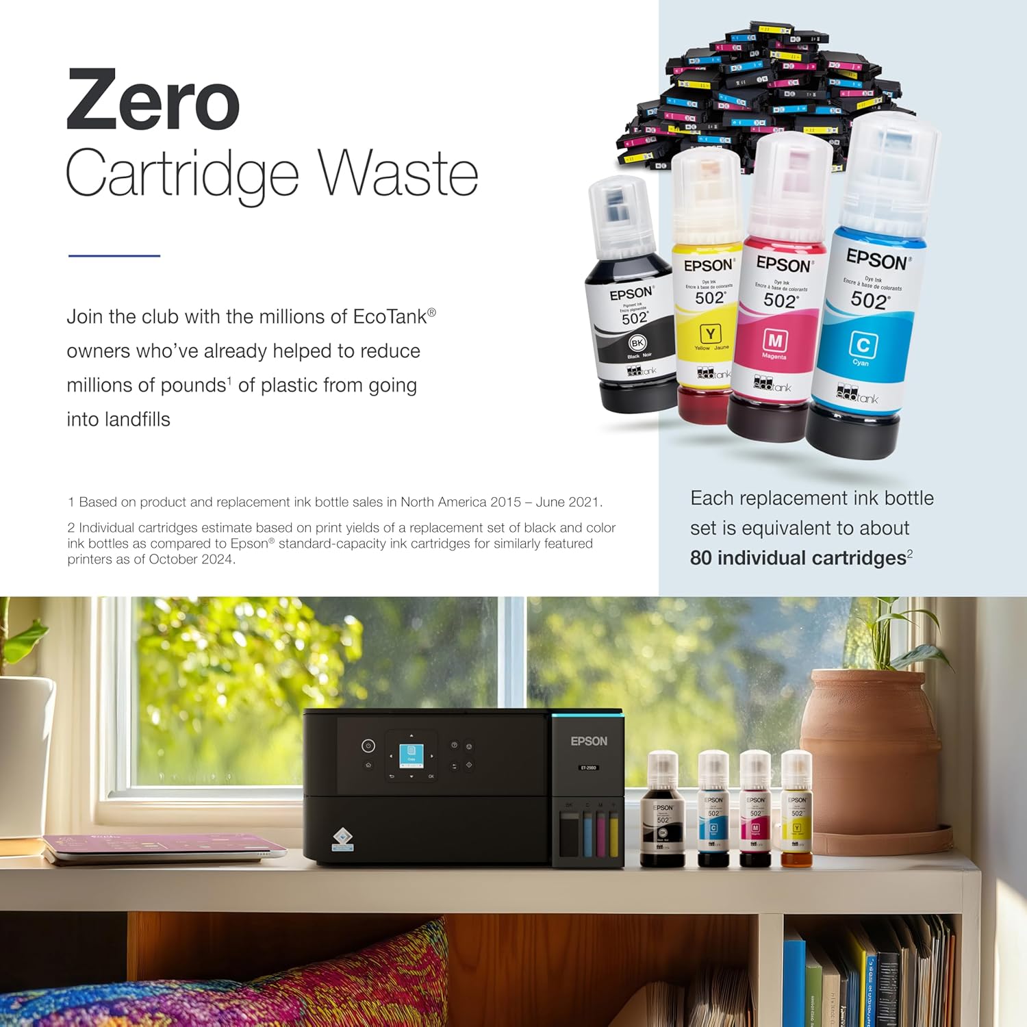 - SIMPLE INK REFILLING - Supersized ink tanks and unique EcoFit bottles make refilling ink simple without the worry of drying out