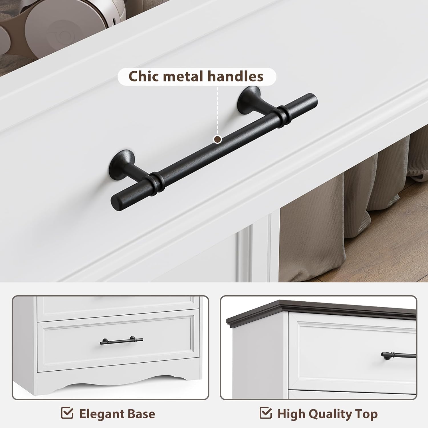 - 【Durable Wood Construction & Elegant Finish】 Crafted from high-quality wood, this farmhouse nightstand ensures durability and long-term use. The smooth white finish complements various decor styles, while the sturdy metal handles add a touch of elegance and practicality.