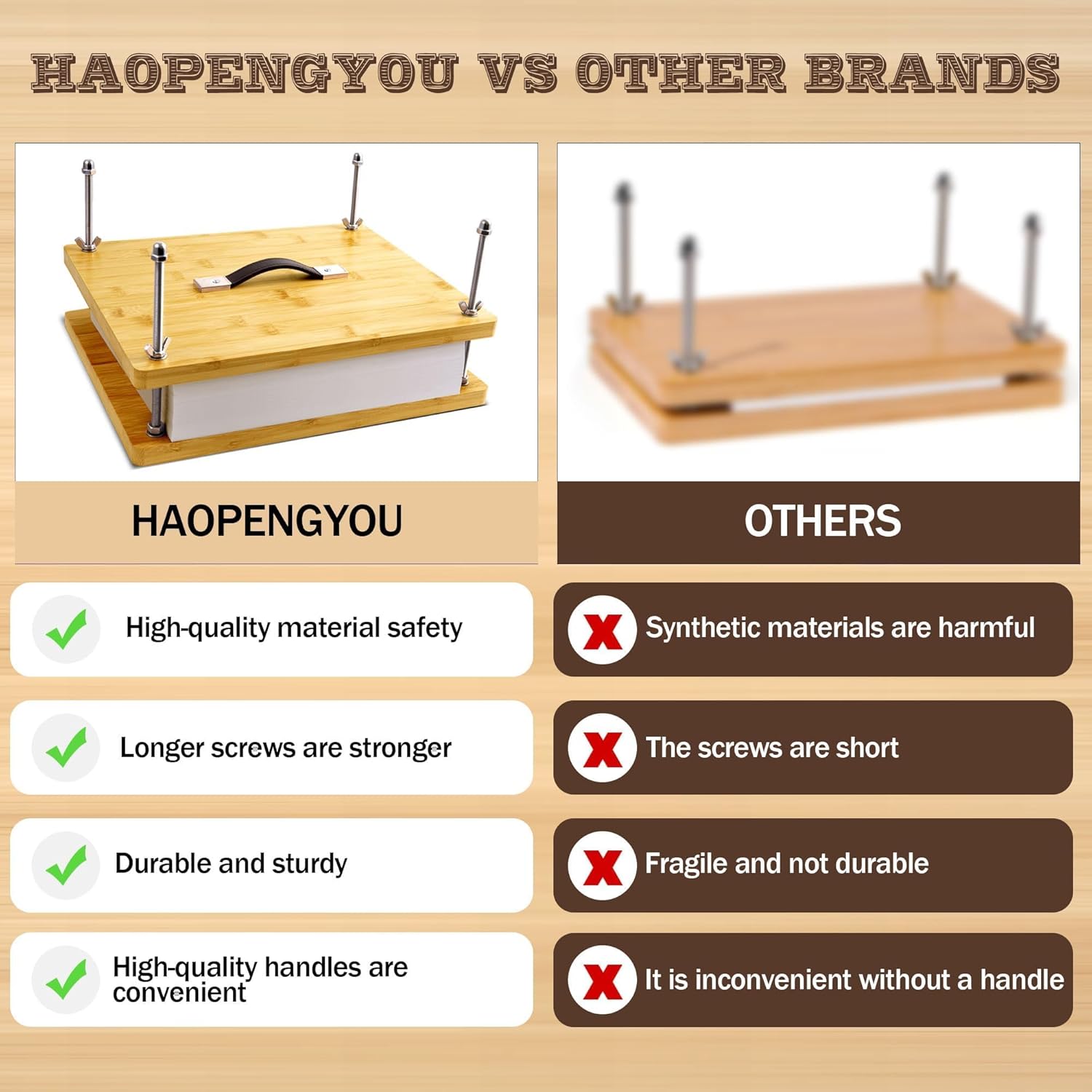 HAOPENGYOU 14.7"x11.4" Large Bamboo Book Press & Bookbinding Kit with Bone Folder, Awl, Needles - Complete DIY Book Repair Craft Set