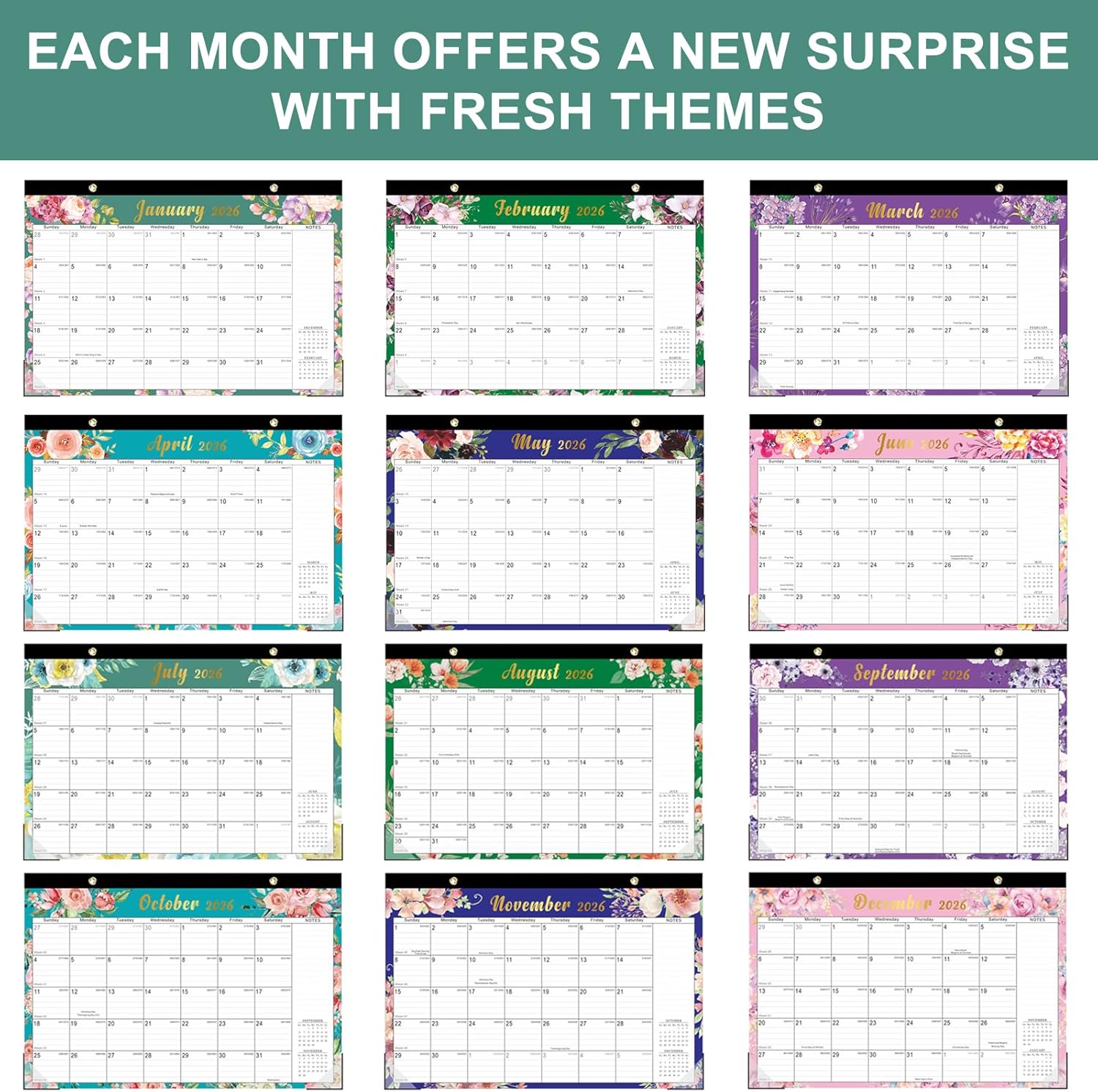- DESK FORMAT: Standard desk calendar 2026-2027 layout with ample writing space and clear date visibility for easy daily planning and scheduling. 17 X 12 inches. Measures approximately 17 inches wide by 12 inches tall when displayed, perfect for standard desk spaces