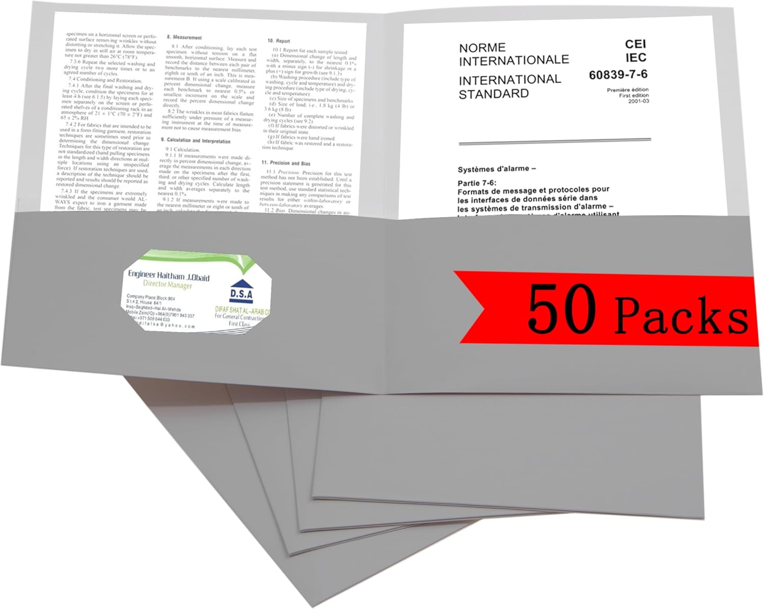 Two Pocket Folders,50 Packs 2 Pocket Folders Bulk,Fit Letter Size Paper Documents Folder for School Office Home Business,Grey