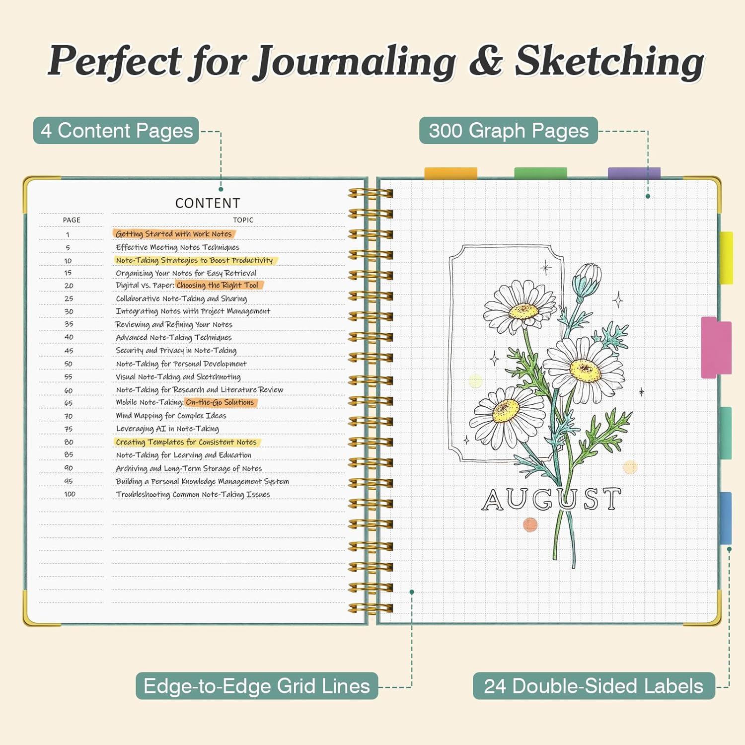 • 【Thoughtful Graph Journal Notebook】Grid notebook includes an elastic closure band to keep it securely closed and features an expandable back pocket for storing loose notes or cards. Additionally, it comes with 24 colorful tabbed stickers for easy sectioning and note classification, perfect for school, office, home, work organization, college, business, adults.