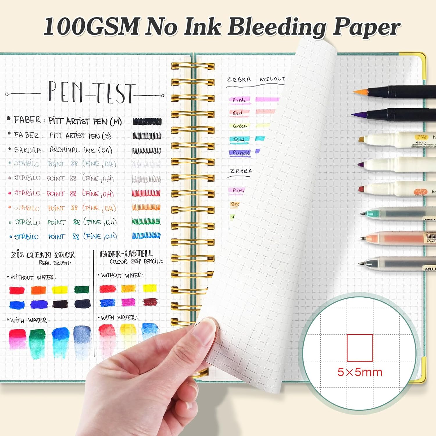 • 【100GSM Thick Grid Paper】The engineering journal notebook features 100gsm thick grid paper that's compatible with various pen types, including ballpoint, gel, fountain,marker and fine line pens, as well as glitter pens.The Ivory color dotted paper has 5mm x 5mm dot grid double-sided sheets that provide a comfortable writing experience, while protecting your eyes.