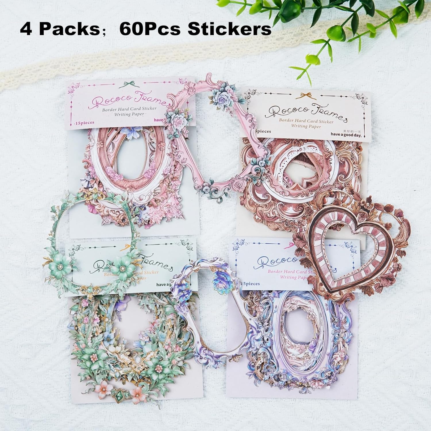 - Elegant Rococo Designs: Each set includes 4 unique styles with 15 ornate frame designs per style, totaling 60 cardstock stickers that bring classic European charm to your scrapbook, journal, and other creative projects