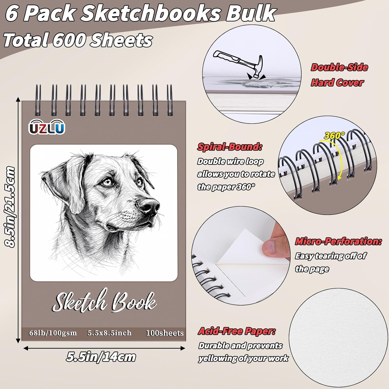 - [Sketchbook Bulk]: You will receive 6 pcs 5.5 x 8.5 in sketch pads for drawing for adults children , each containing 100 blank art papers, a total of 600 drawing papers. This large sketchbook is suitable for people of different skill levels to unleash their creativity. Sketchbooks for girls and boys allow for fun, colorful creations that inspire artistic exploration and creativity, while sketchbooks for adults are great for more complex designs.