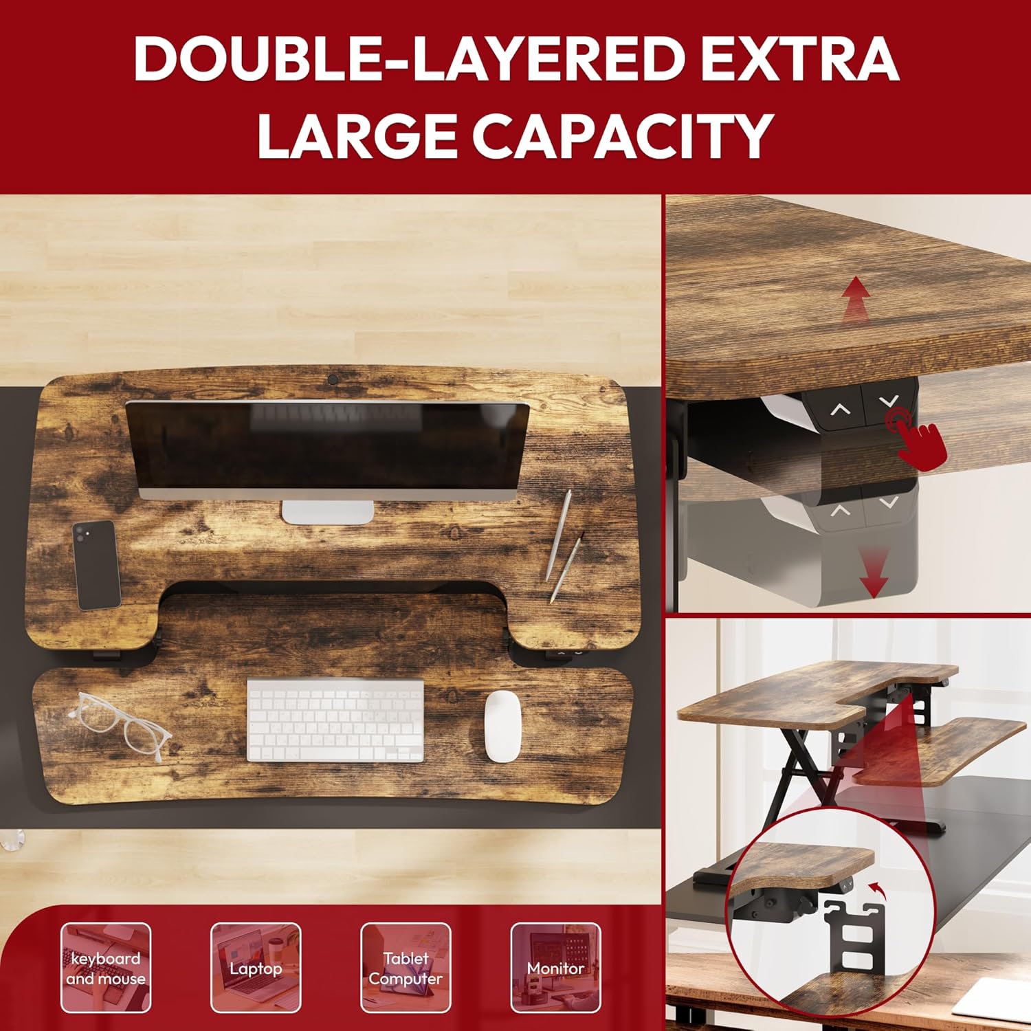 SANODESK Standing Desk Converter with Electric Motor 40" Height Adjustable Riser for Office Home,Dual Monitor and Laptop Workstation with Large Keyboard Tray,Rustic Color