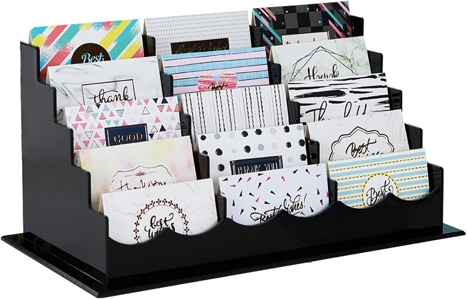Business Acrylic Card Holder Display for Desk, 15 Slots 5 Tiers Multiple-Black Acrylic Business Card Stand Set, Holds Approximately 750 Cards