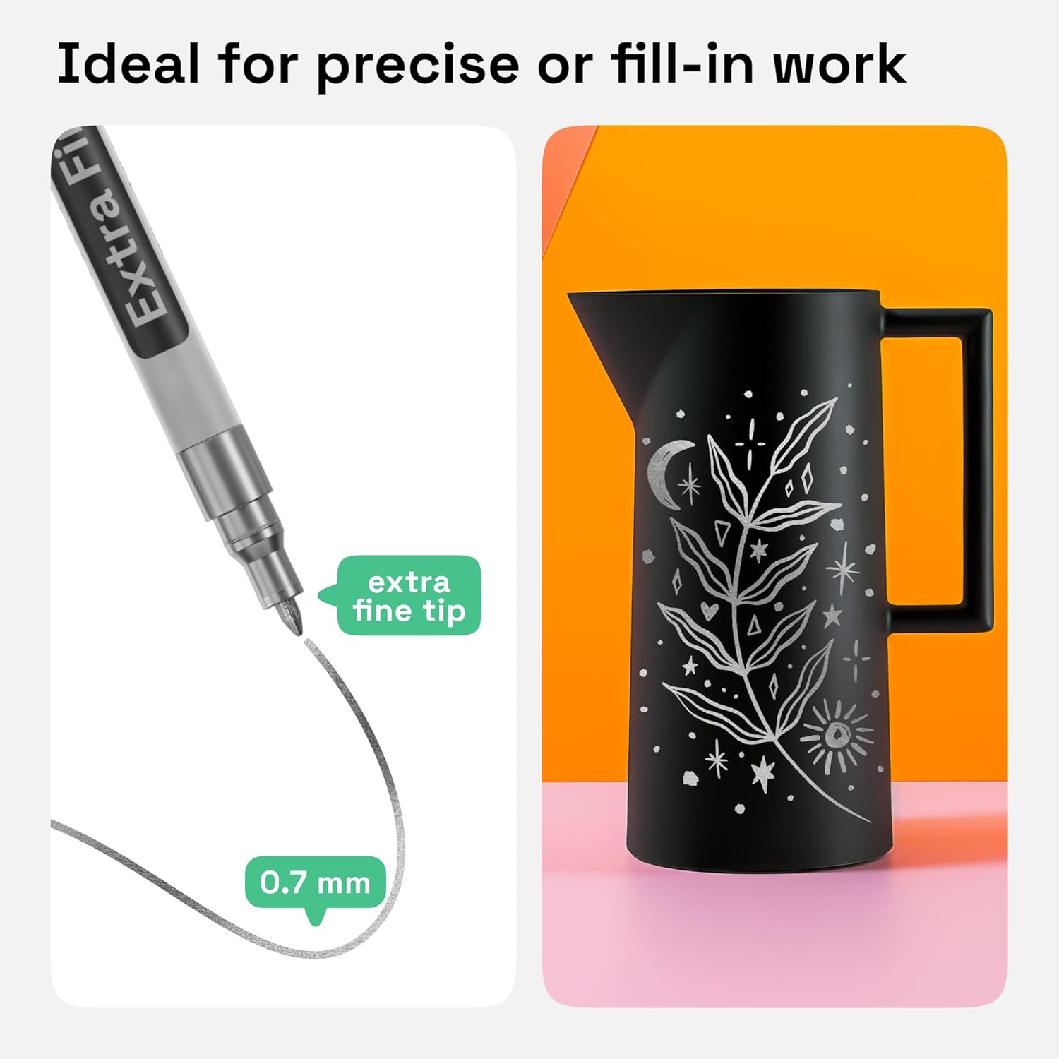 - Extra-Fine Tip: Each oil paint pen is made for fine line work. Detail your DIY project with these oil based pens. Each oil based paint marker will add some shine to your art, no matter the occasion – Christmas, birthday, or wedding decorations!