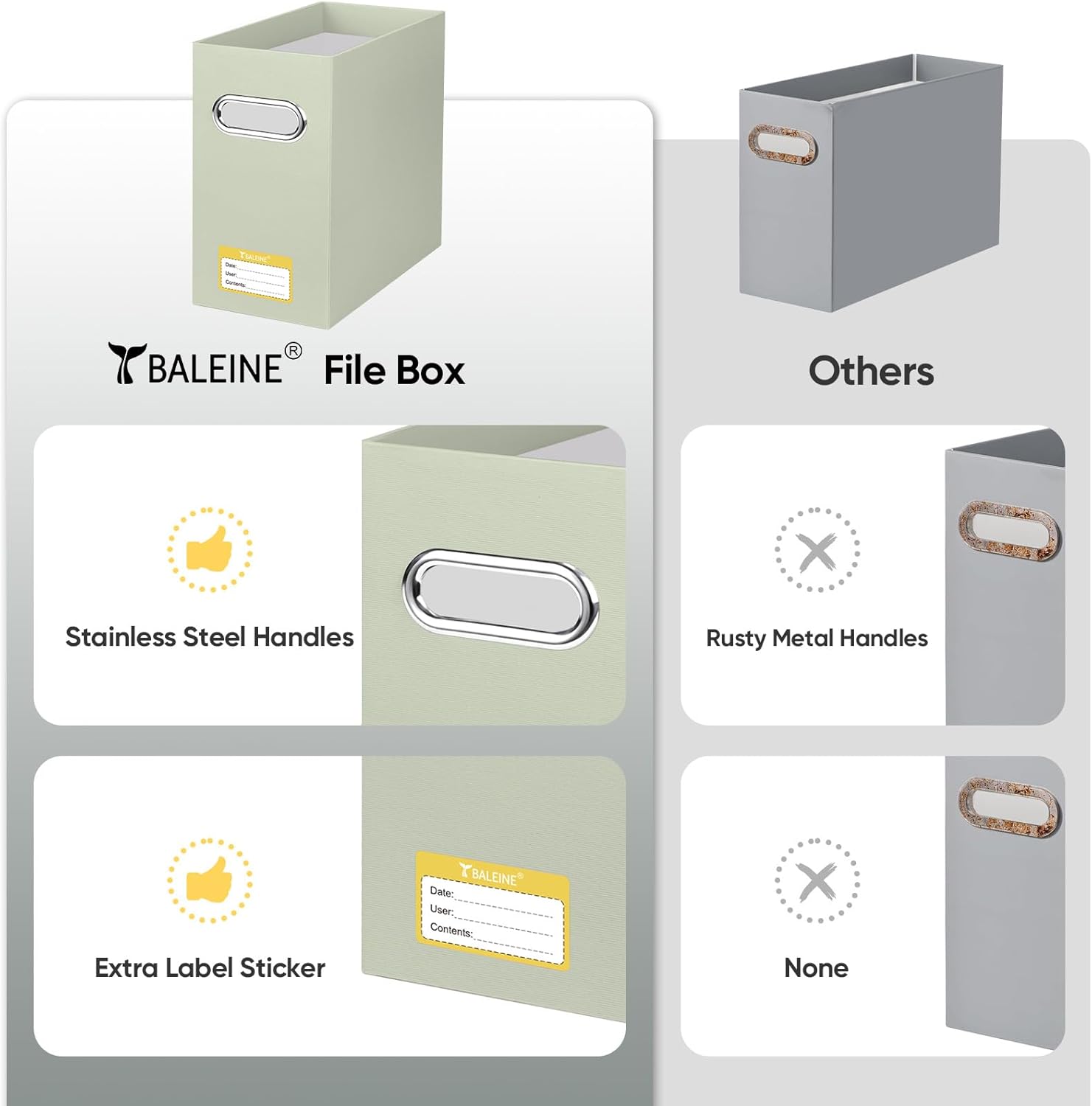 - UNIVERSAL SIZE: BALEINE File box with handles is suitable for letter size files; Designed for efficiency and functionality, it’s ideal for storing and organizing your paper documents, notebooks, and magazines (NOTE: Folders not included)