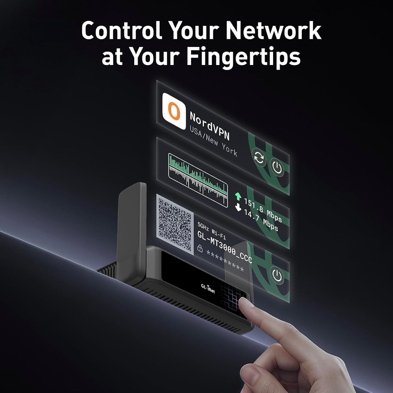 - ăNETWORK CONTROL WITH TOUCHSCREEN SIMPLICITYăSlate 7âs touchscreen interface lets you scan QR codes for quick Wi-Fi, monitor speed in real time, toggle VPN on/off, and switch providers directly on the display. Color-coded indicators provide instant network status updates for Ethernet, Tethering, Repeater, and Cellular modes, offering a seamless, user-friendly experience.
