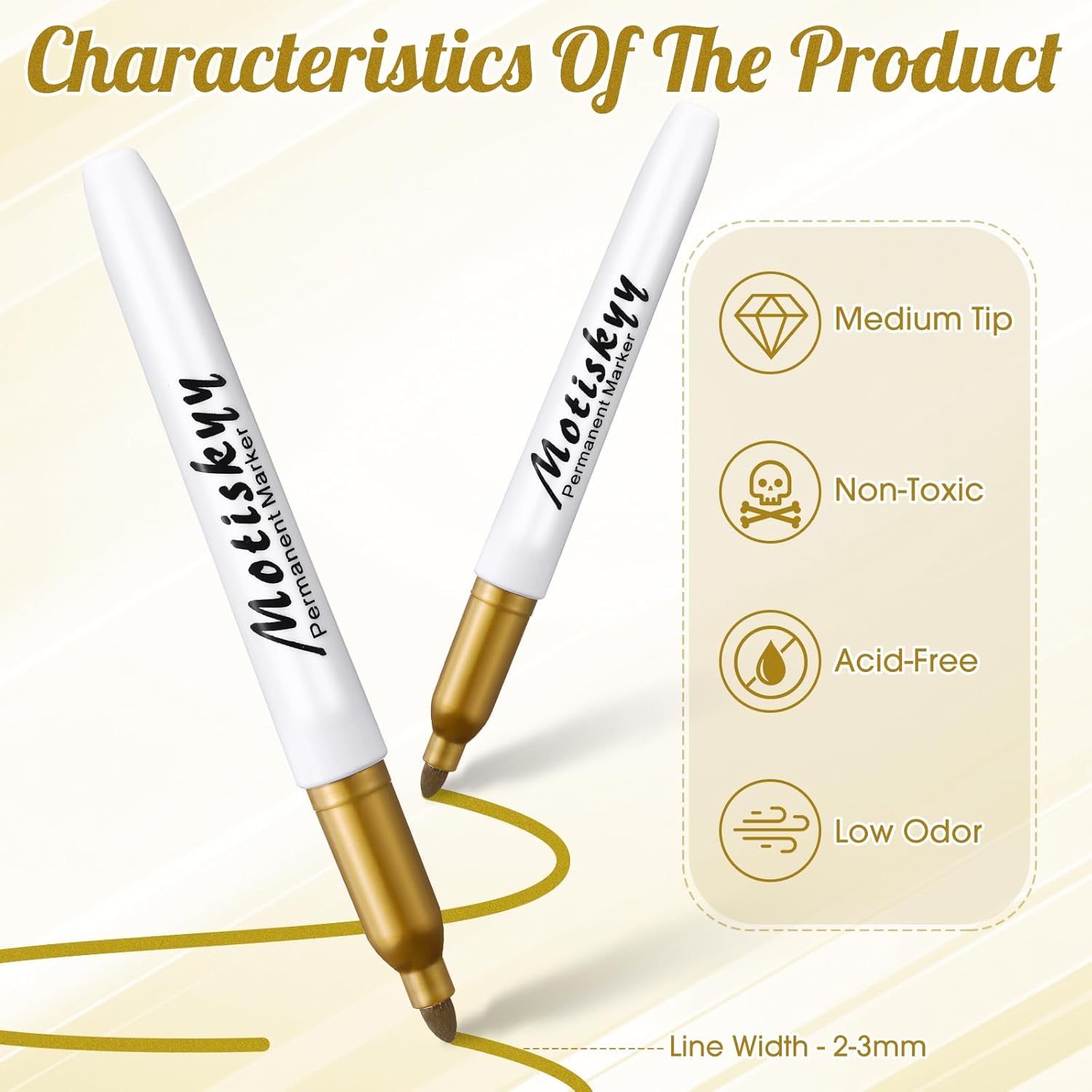 - Premium Ink: Fine point metallic markers pens use premium-quality low-odor, non-toxic, acid-free ink with good coverage, creating a long-lasting opaque and glossy effect on light and dark surfaces. Note: After use, you need to cover the pen cap to prevent the ink from drying