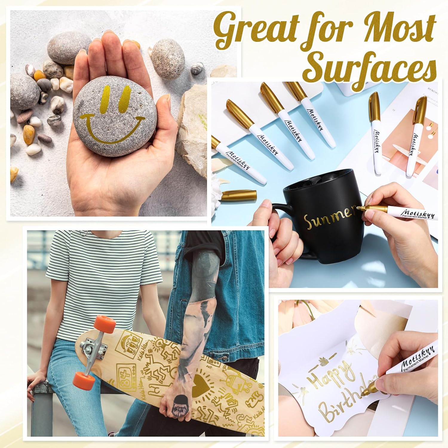 - Multi-surface Use: metallic marker pens do not need to be shaken, saving physical effort, and can be applied on a variety of surfaces, including paper, wood, fabric, canvas, stone, ceramic, plastic, metal, etc