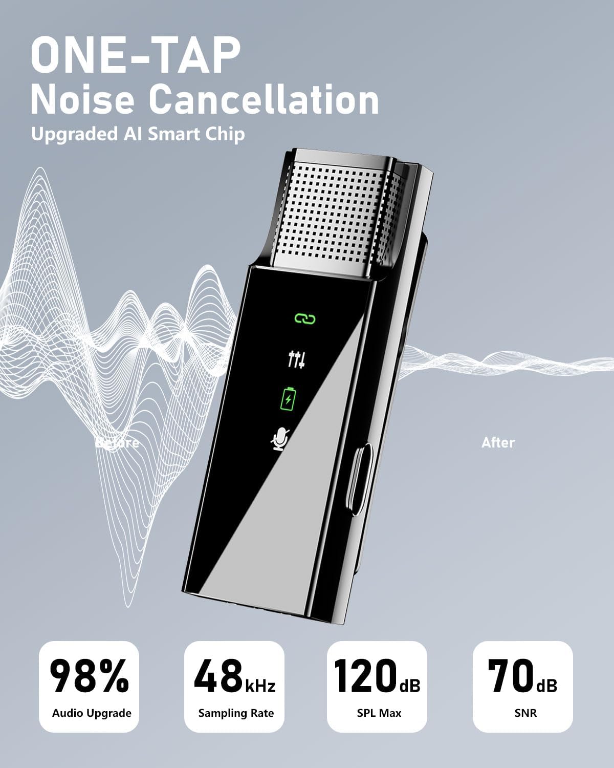 - Exceptional Noise Cancellation: In today’s noisy world, background distractions can easily ruin a recording. But with the ZERFUN 4, those worries become a thing of the past. Its one-tap noise cancellation feature, combined with an impressive 70dB SNR (Signal-to-Noise Ratio), actively hunts down and eliminates unwanted ambient noise. Whether you're recording in a bustling coffee shop, a busy street, or near a construction site, the upgraded smart chip works tirelessly, offering a 98% audio upgrade. Perfect for podcasters who often record on the go, vloggers filming in public spaces, or live streamers in crowded venues, ZERFUN 4 ensures your voice is the star of the show.
