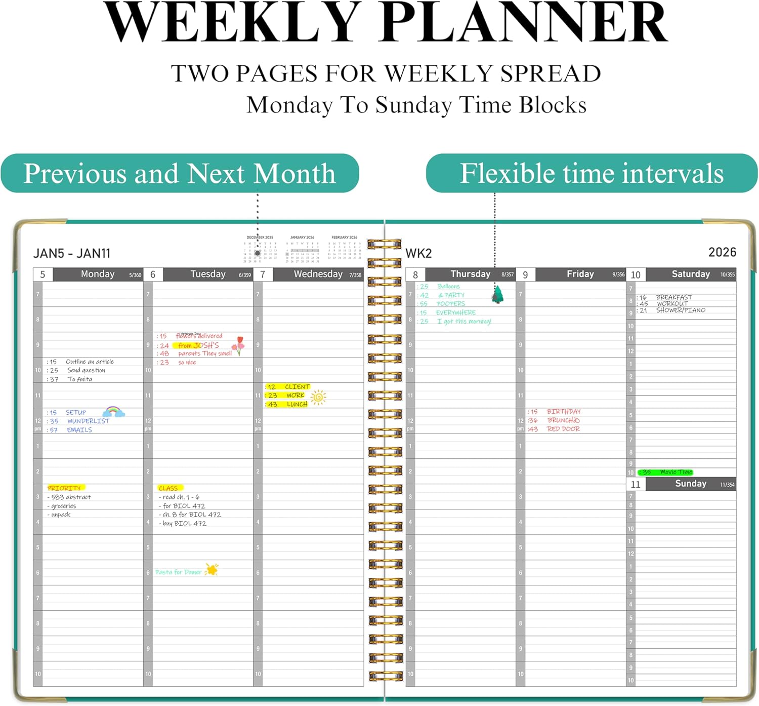 - Durable Build - This appointment book&planner features a durable metal binding and a lay-flat spiral design, giving it a vibrant and attractive appearance that brightens your day. The rounded corners are designed to protect your hands from scratches. Additionally, it includes premium, thicker paper to prevent ink from bleeding through, helping you keep your life, work, and studies more organized.The size: 8.5" x 11", it is large and easy to use and carry away.