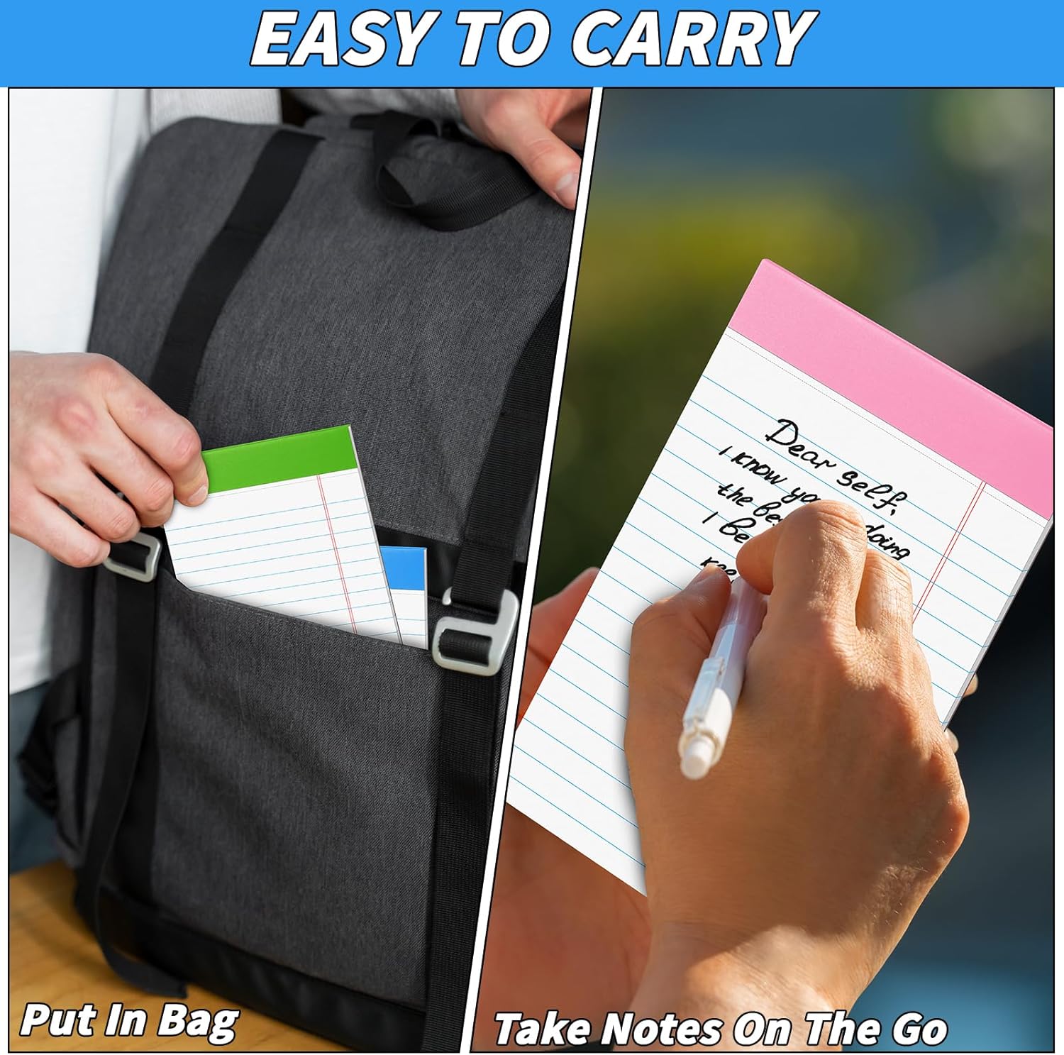 - Premium Lined Paper 5x8: Legal Pads 5 x 8 Inch feature weight 80gsm thick paper with black lines and double red margin lines, providing ample space for your notes. The smooth, white paper allows your pen to glide across the page, resisting ink bleeding and show-through. These colorful notepads are thicker than average for a luxurious writing experience with minimal ghosting
