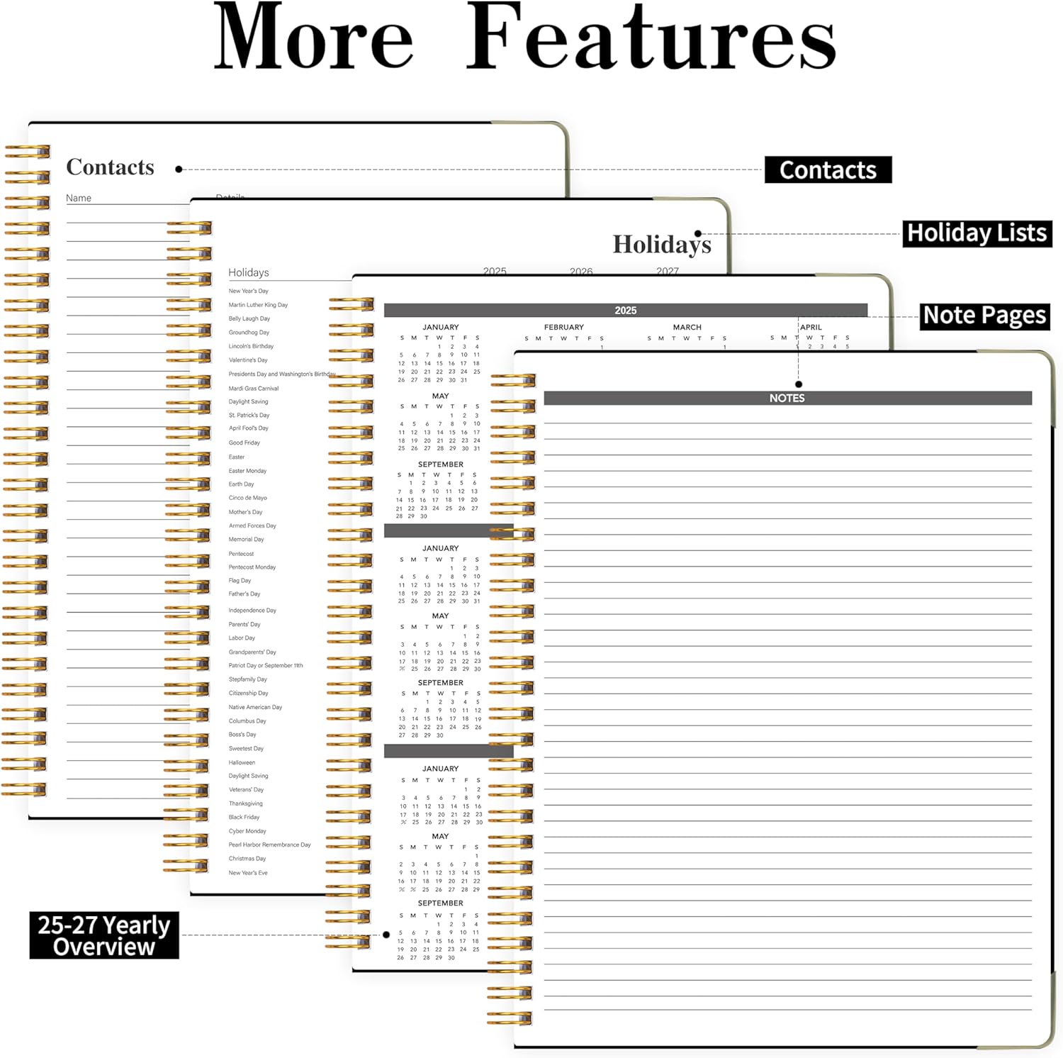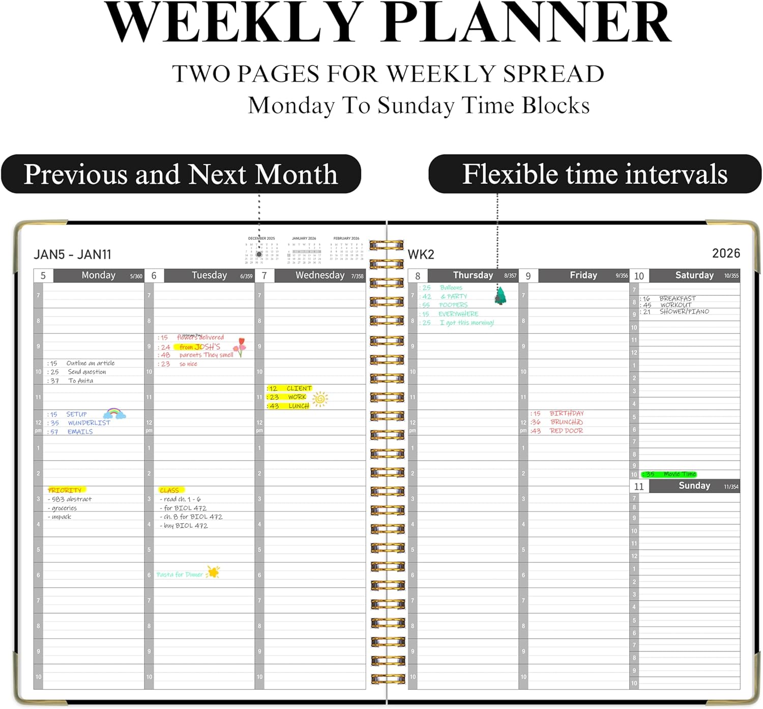 - Durable Build - This appointment book&planner features a durable metal binding and a lay-flat spiral design, giving it a vibrant and attractive appearance that brightens your day. The rounded corners are designed to protect your hands from scratches. Additionally, it includes premium, thicker paper to prevent ink from bleeding through, helping you keep your life, work, and studies more organized.The size: 8.5" x 11", it is large and easy to use and carry away.