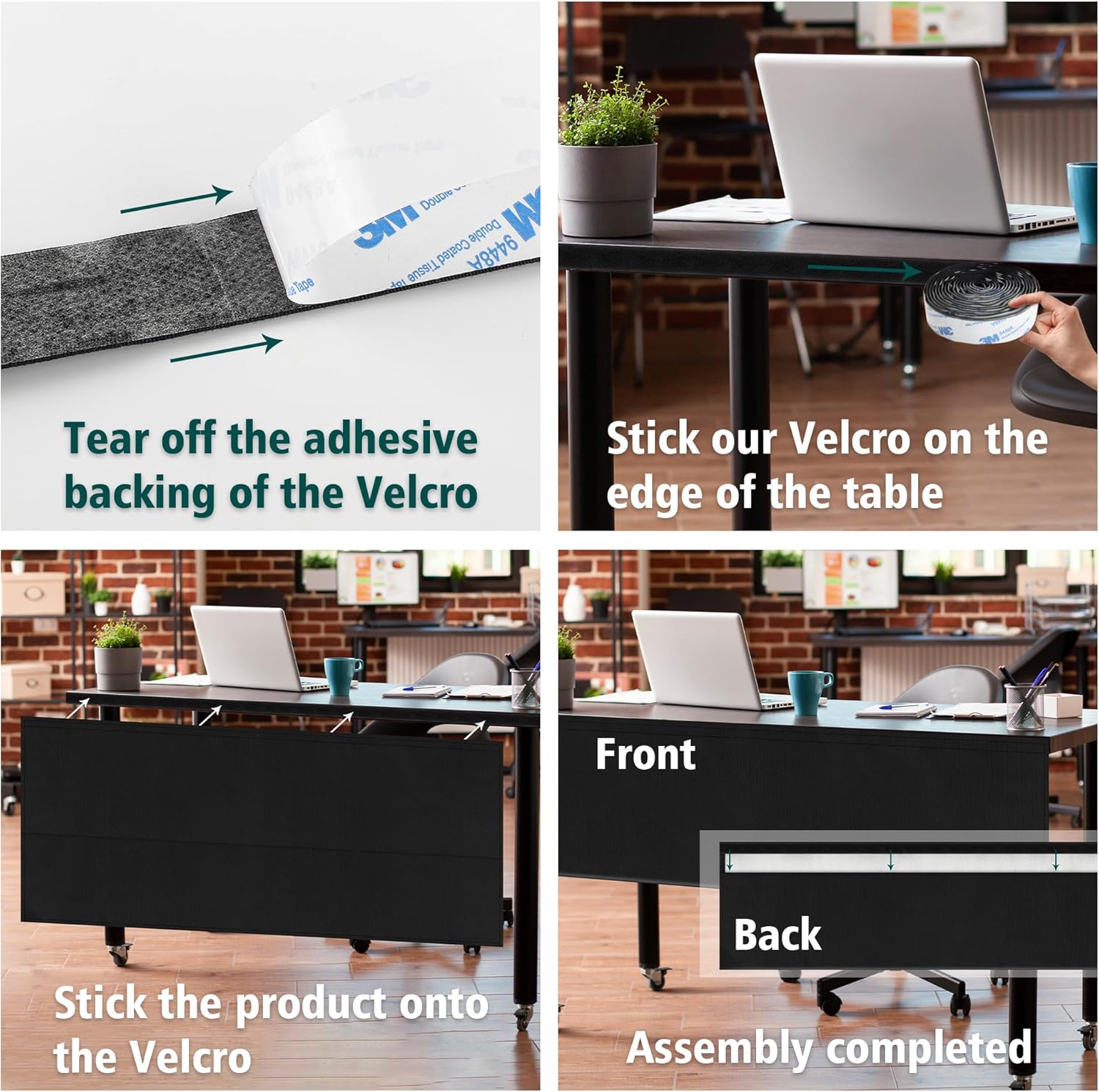 59" Under Desk Privacy Panel with Cable Management Organizer Sleeve Self-Adhesive Modesty Panel for Cord Organizer Pockets and Desk Skirt for Home Office or Standing Workstation