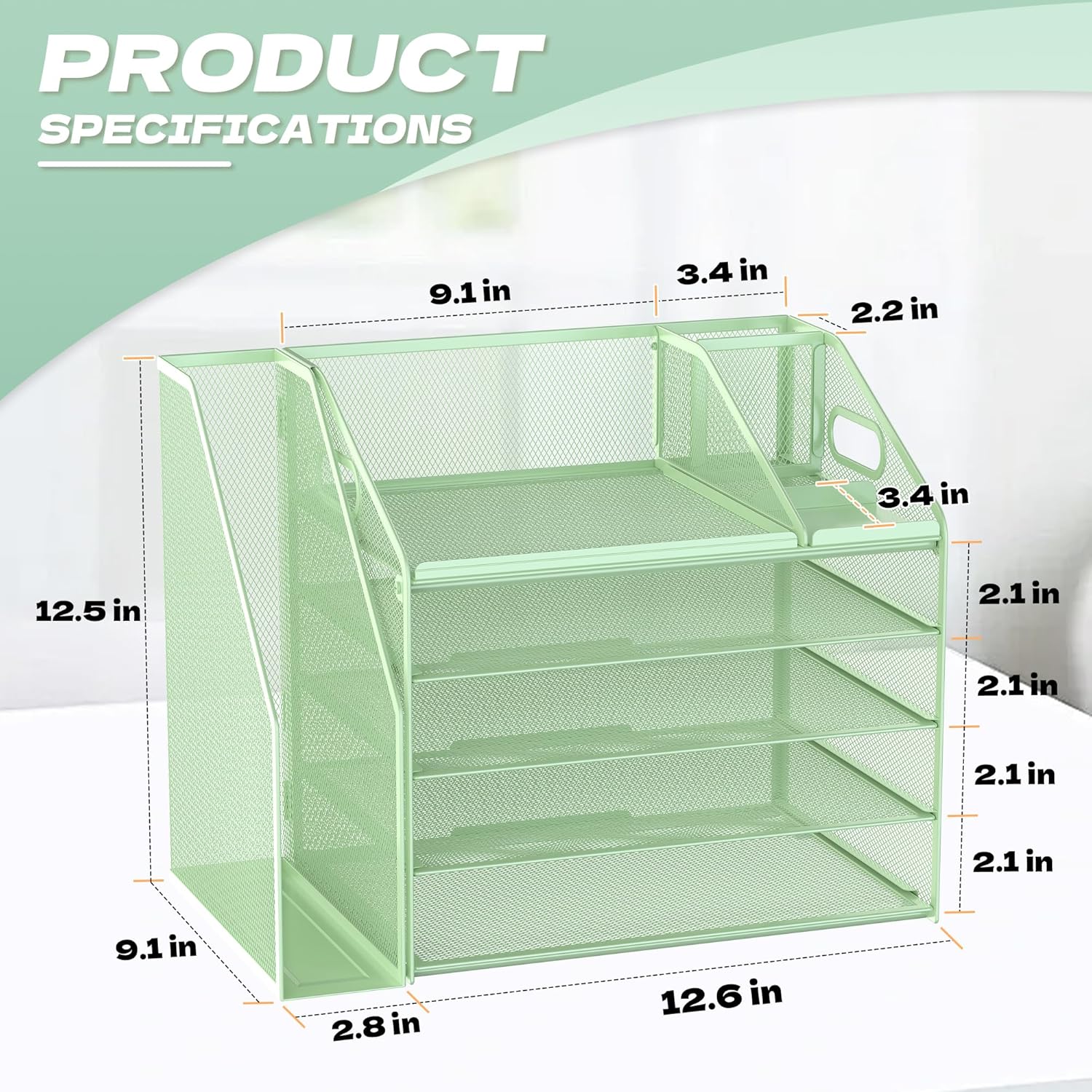 - 5 Tier Organization with Pen Holder: This Green desk organizer boasts a 5-tier design for efficient sorting of your papers, letters, and other office supplies, along with a dedicated pen holder. It's perfect for maintaining a tidy and uncluttered workspace. The desk file organizer is an essential desk accessory that contributes to an orderly and professional atmosphere