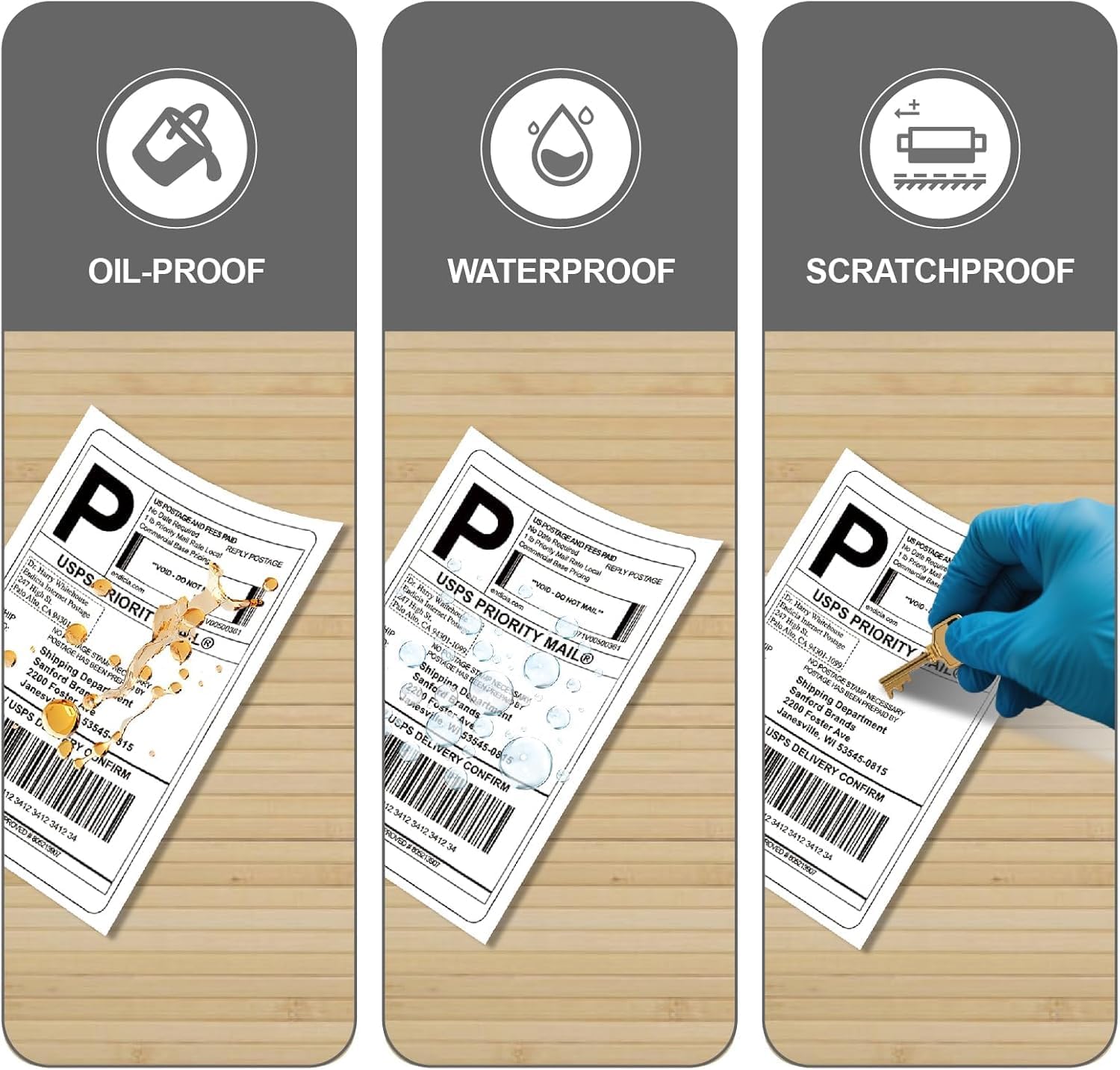 - 🧡HUOJI thermal shipping labels 4x6 are engineered to be water-proof, oil-resistant, and scratch-resistant. They are also BPA-free and non-toxic.