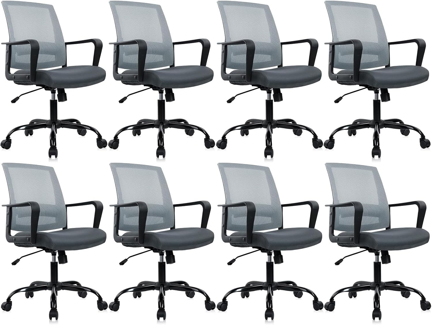 CLATINA Ergonomic Office Desk Chair - Mesh Office Chair with Adjustable Lumbar Support, Rolling Comfortable Computer Task Chairs with Arms for Home Conference-Gray, 8 Pack