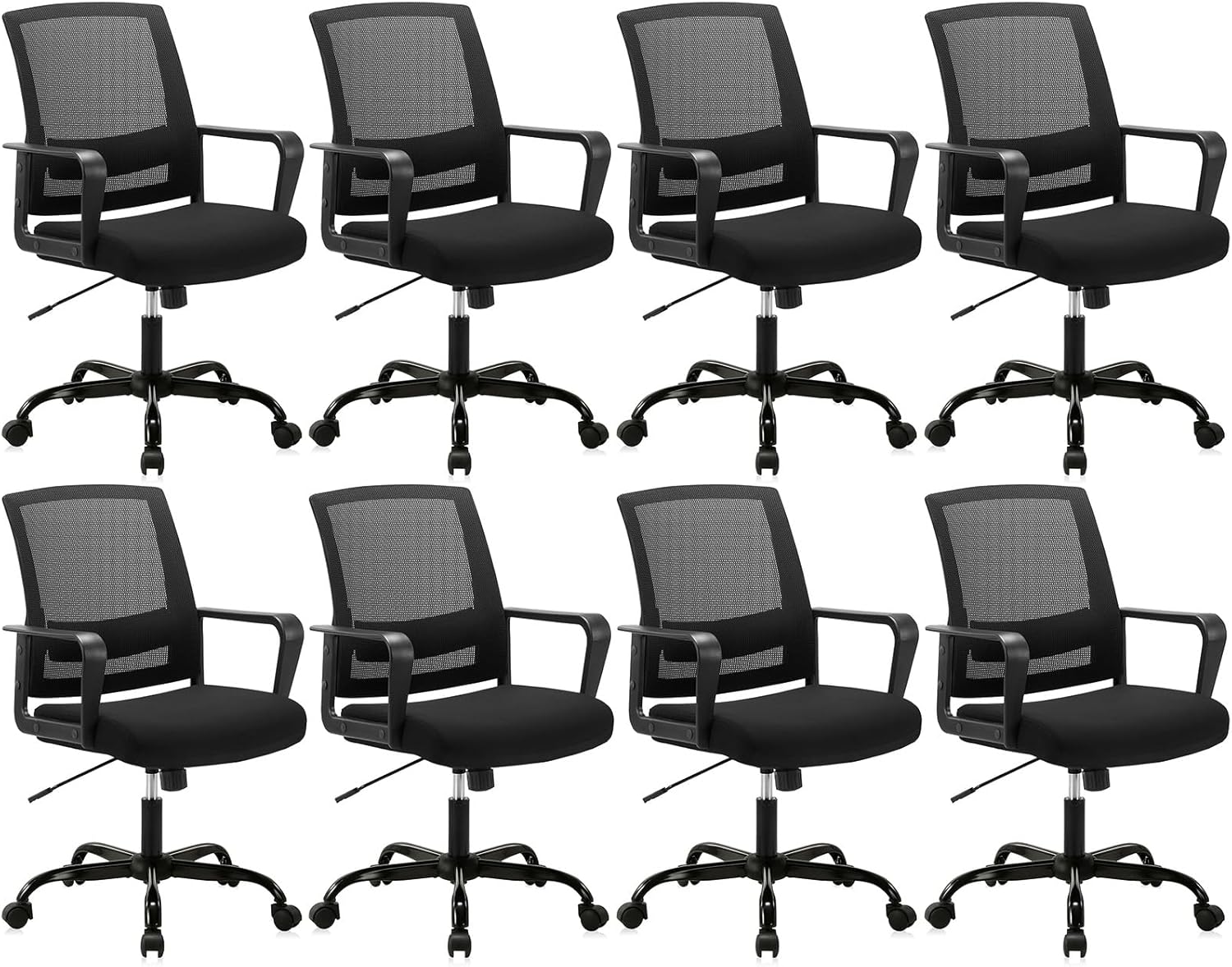 CLATINA Ergonomic Rolling Mesh Desk Chair with Executive Lumbar Support and Adjustable Swivel Design for Home Office Computer Black 8 Pack