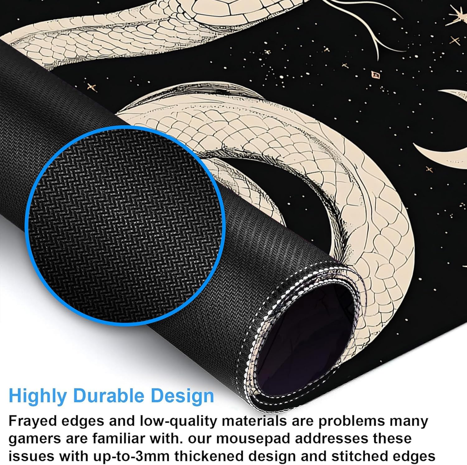 Desk Mat, Boho Gothic Snake and Pink Rose Large Gaming Mouse Pad with Non-Slip Base Stitched Edges,Desk pad for Keyboard and Mouse Home Office 35.4"x15.7"