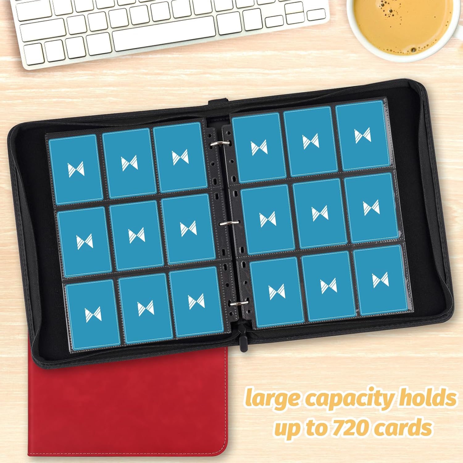 720 Card Binder, Premium Trading Card Binder, 9 Pocket Double Sided Pocket PU Card Collection Binder, Collector Card Album, Card Folder for MTG, TCG, Sports Cards, Game Cards (Red)