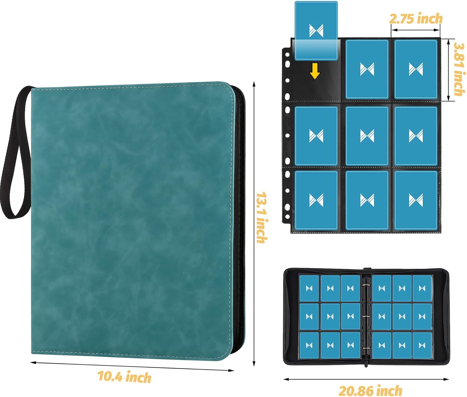 720 Card Binder, Premium Trading Card Binder, 9 Pocket Double Sided Pocket PU Card Collection Binder, Collector Card Album, Card Folder for MTG, TCG, Sports Cards, Game Cards (Lake Blue)