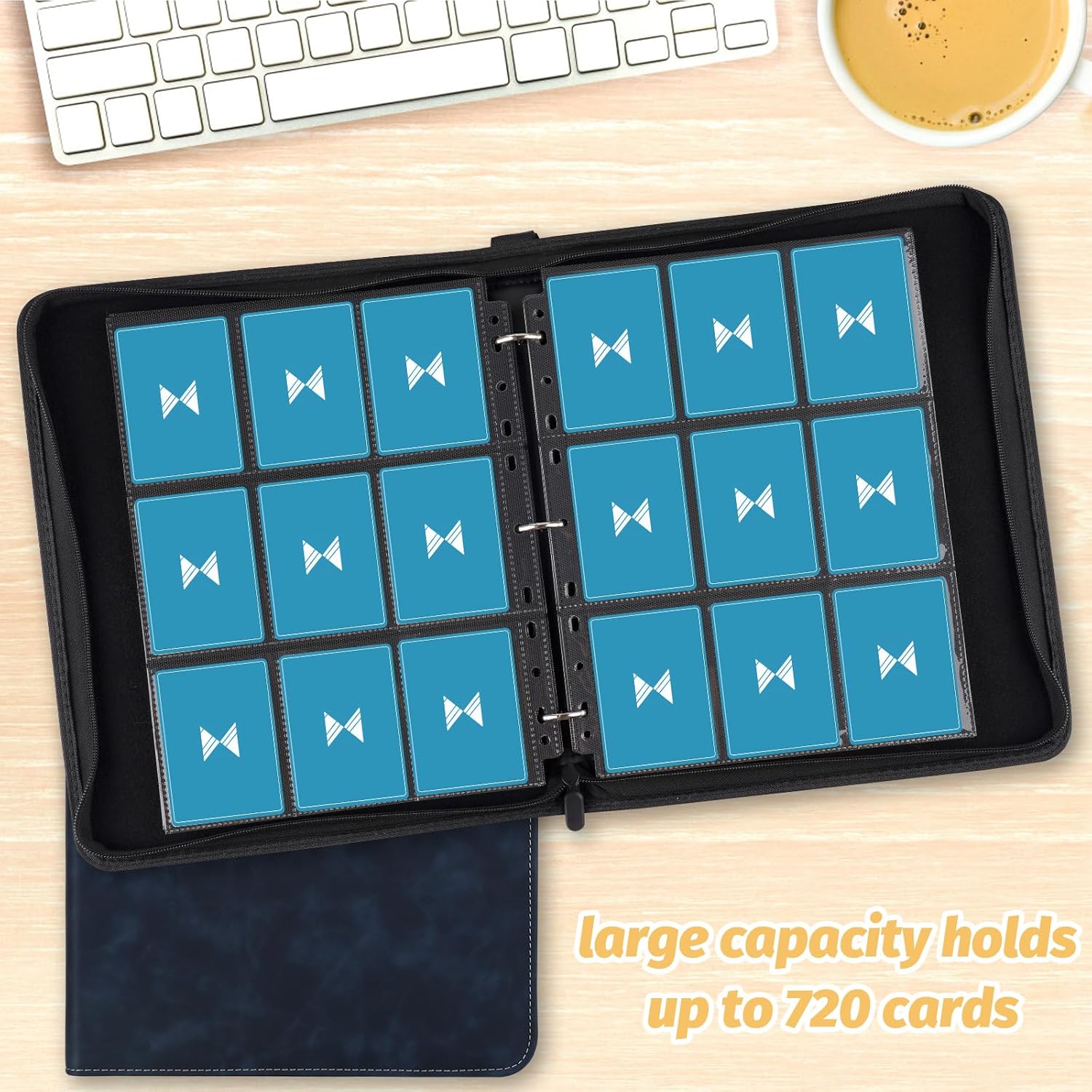 720 Card Binder, Premium Trading Card Binder, 9 Pocket Double Sided Pocket PU Card Collection Binder, Collector Card Album, Card Folder for MTG, TCG, Sports Cards, Game Cards (Dark Blue)