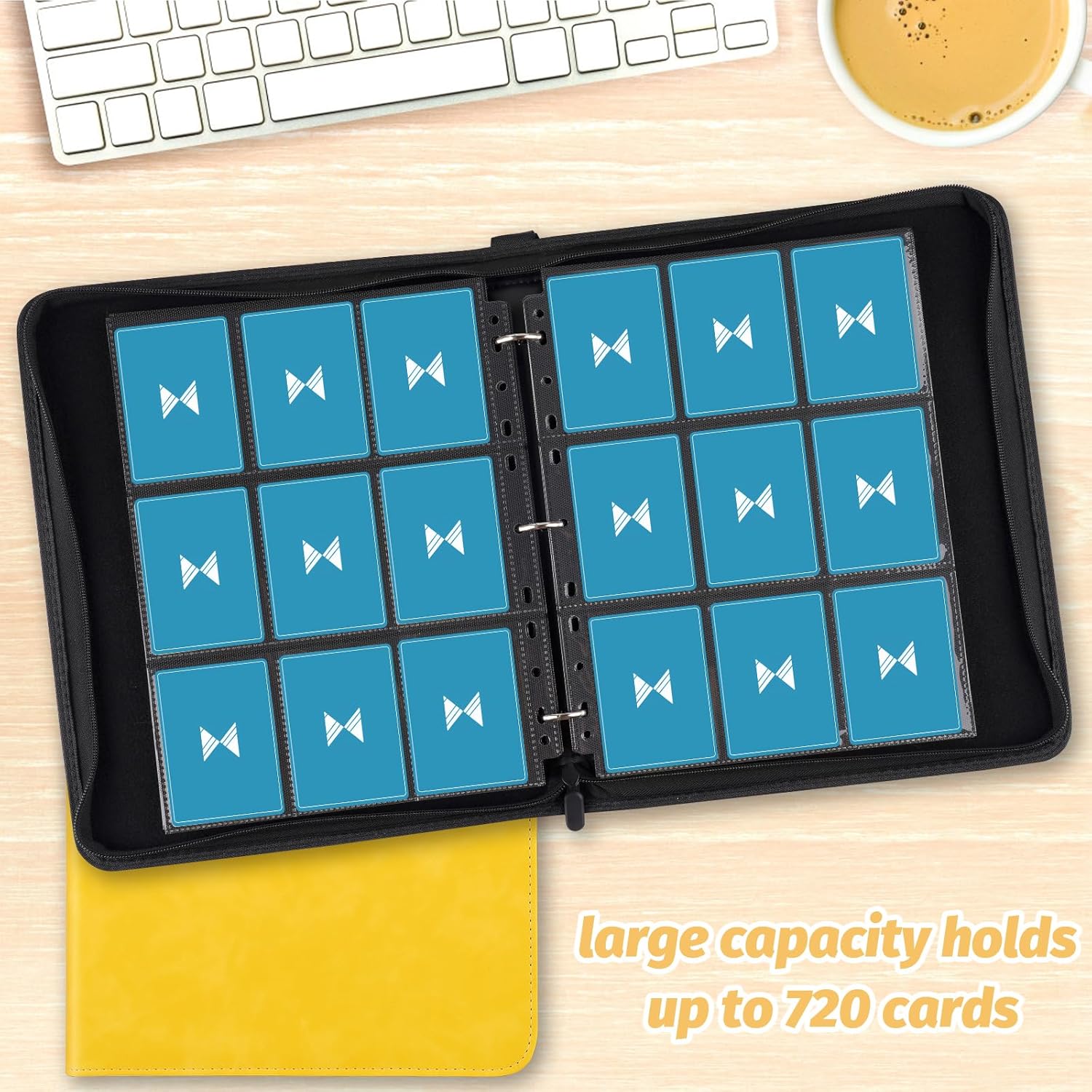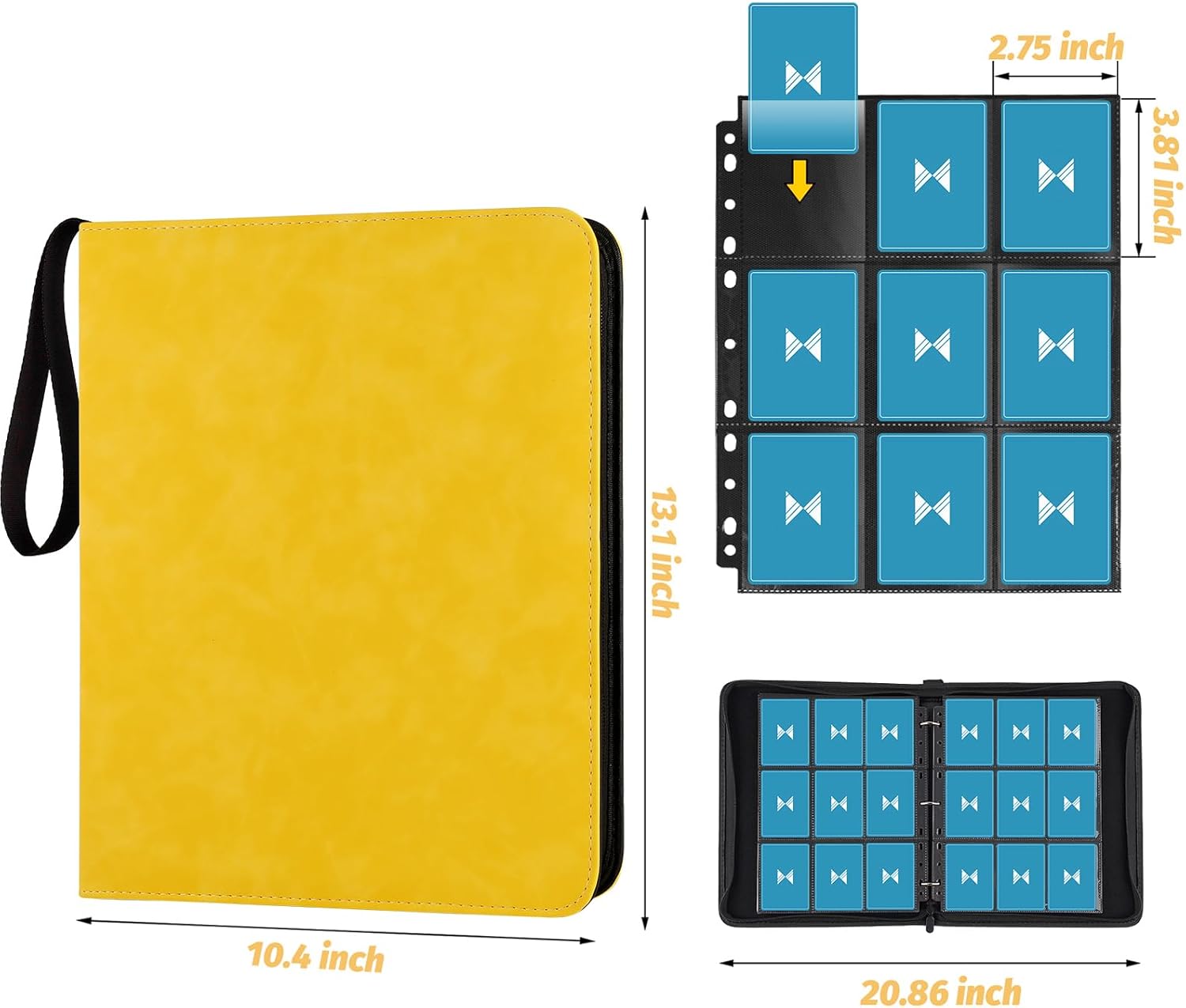 720 Card Binder, Premium Trading Card Binder, 9 Pocket Double Sided Pocket PU Card Collection Binder, Collector Card Album, Card Folder for MTG, TCG, Sports Cards, Game Cards (Yellow)