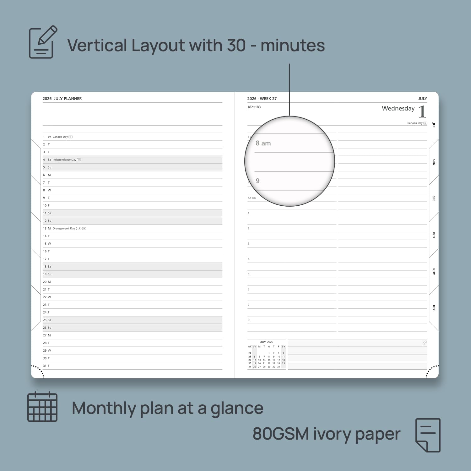 - EXTRA PAGES - This 2026 daily planner also contains "2026-2027 Year Planner" Page + "2026 Holiday & Calendar" Page + 2 Contact Pages +1 Password Page + 8 Dotted Notes Pages for jotting down your ideas, thoughts or any other happy things in detail.