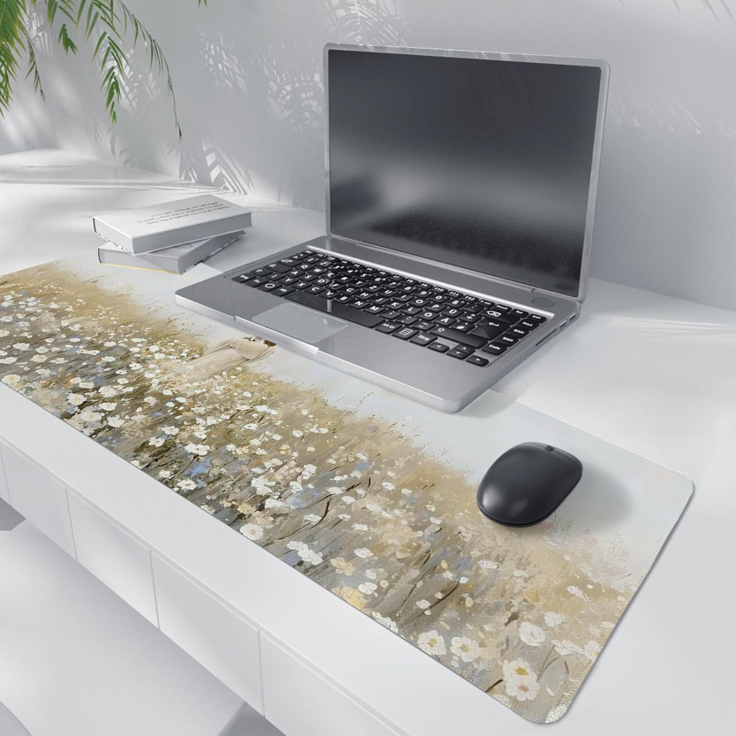 Christian Themed Mouse Pad,Jesus Religious Mouse Pad,Large Vintage Easter Decor Desk Mat,Jesus Find The Lost Lamb,White Floral Desk Mat,Religious Gifts Christian Gifts for Women,31.5x11.8