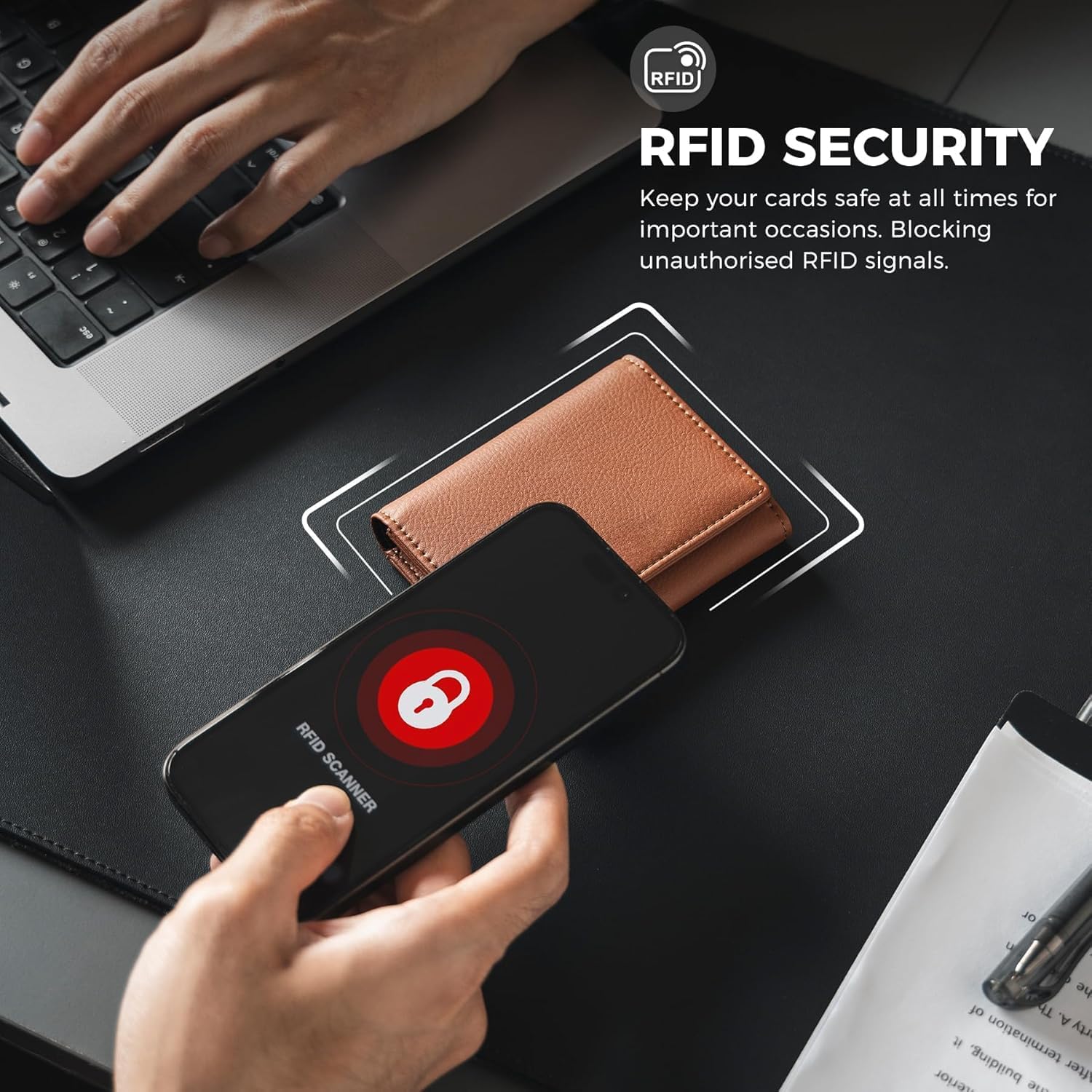 Real Leather Business Card Holder Premium RFID Blocking Card Case with ID Window and Magnetic Closure Holds Up to 40 Business Cards (Grain Brown)