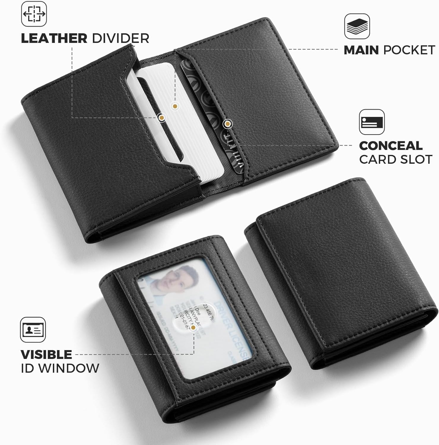 Real Leather Business Card Holder Premium RFID Blocking Card Case with ID Window and Magnetic Closure Holds Up to 40 Business Cards (Grain Black)