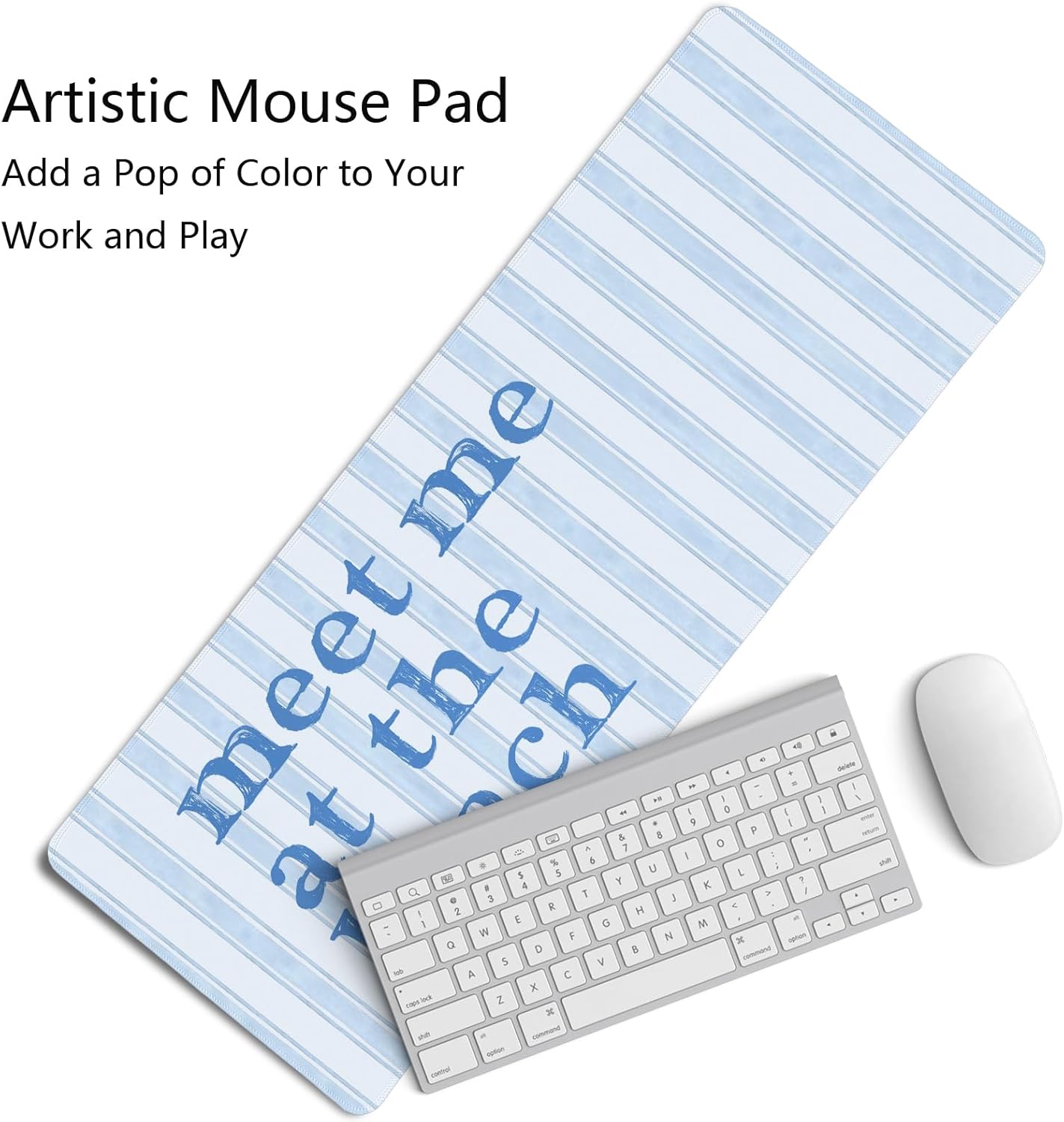 Blue Ocean Beach Room Mouse Pad,Light Blue Coastal Room Decor Mouse Pad,XL Large Ocean Desk Mat,Girly Summer Beachy Gaming Pads,Meet Me at The Beach Desktop Decor Art,31.5x11.8 Inch