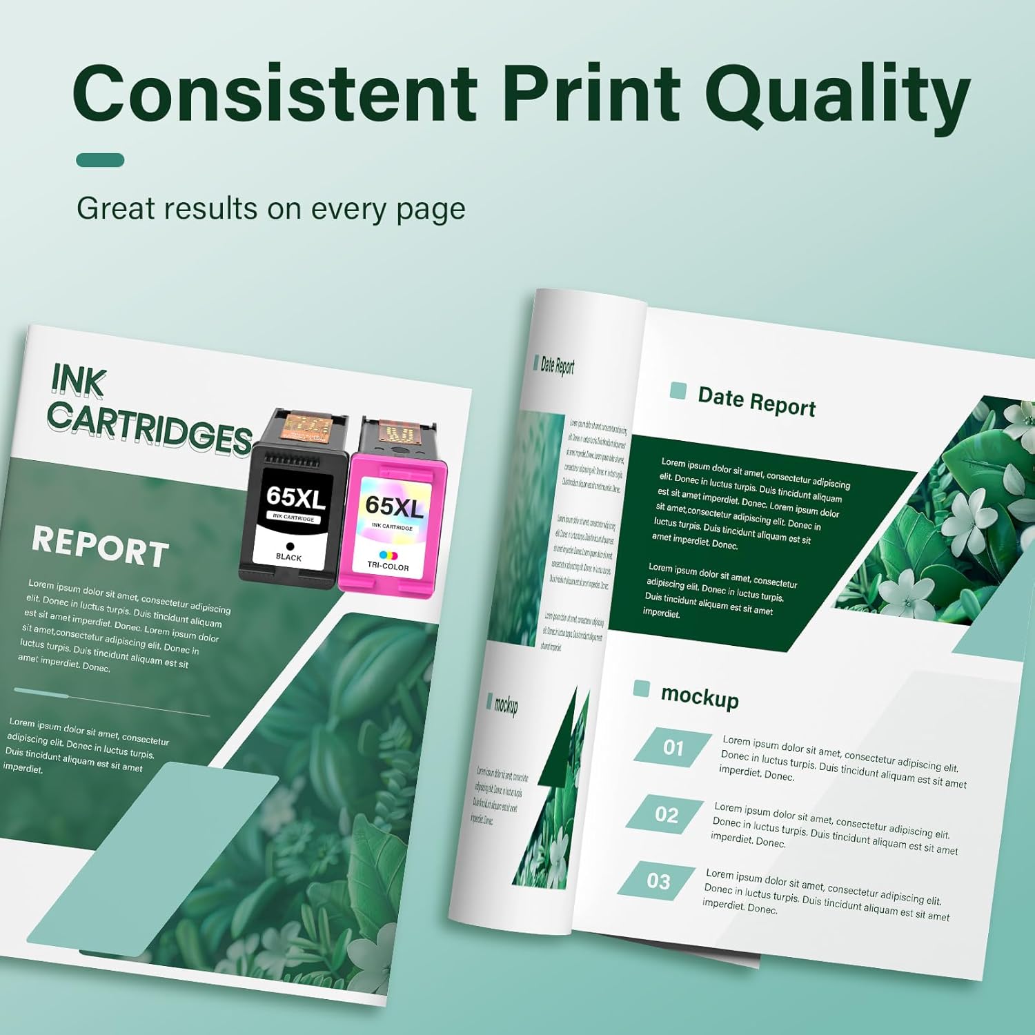 - High Page Yield: It yields up to 750 pages for each 65XL Black Ink and 450 pages for each 65XL Color Ink at 5% coverage (A4e letter)