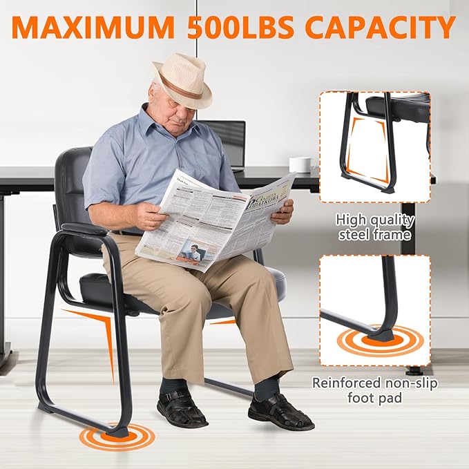 - 【Premium Material】 CLATINA guest chair is made with finest quality craftsmanship and premium materials, a combination of PVC leather upholstery on the back, seat and padded arm rests, durable sturdy frame, guaranteed to withstand the test of time.