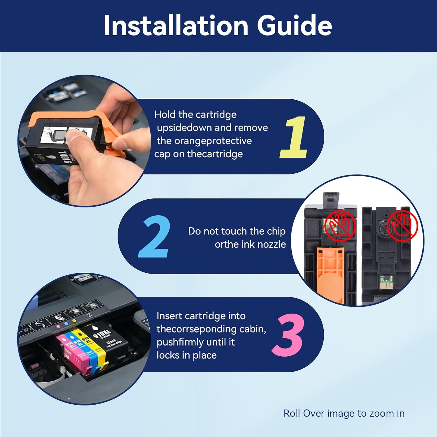 - Higher Printing Page Yield: 1200 pages for per 910xl black ink cartridges and 1000 pages per 910xl ink cartridges for hp printers at 5% coverage for A4 paper
