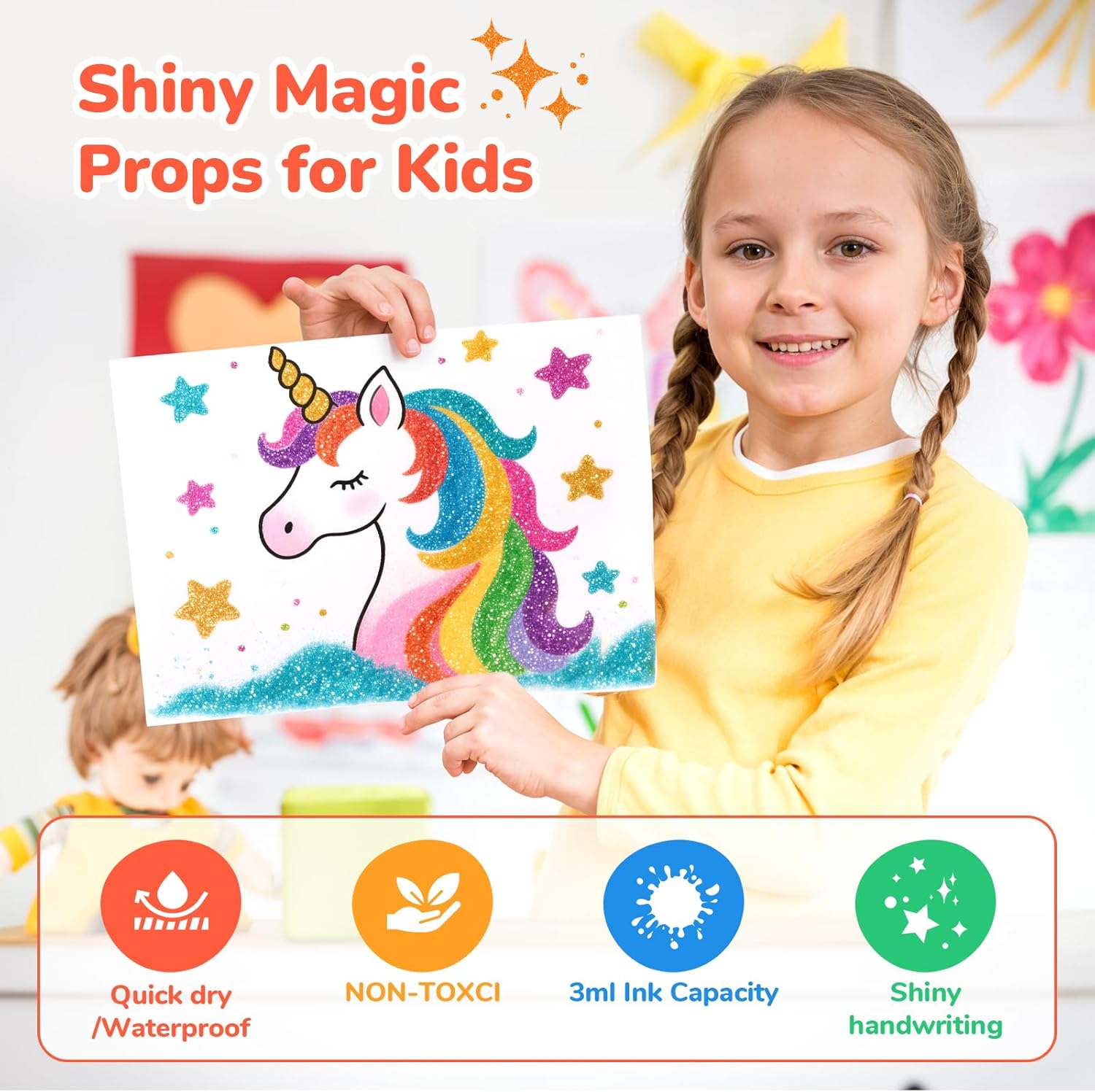 - 【50% MORE INK | LASTING CREATIVITY】 Packed with 3ml high-capacity ink (vs standard 2ml), our glitter markers deliver extended painting time and vibrant coverage. Ideal for large-scale projects where competitors' pens run dry.