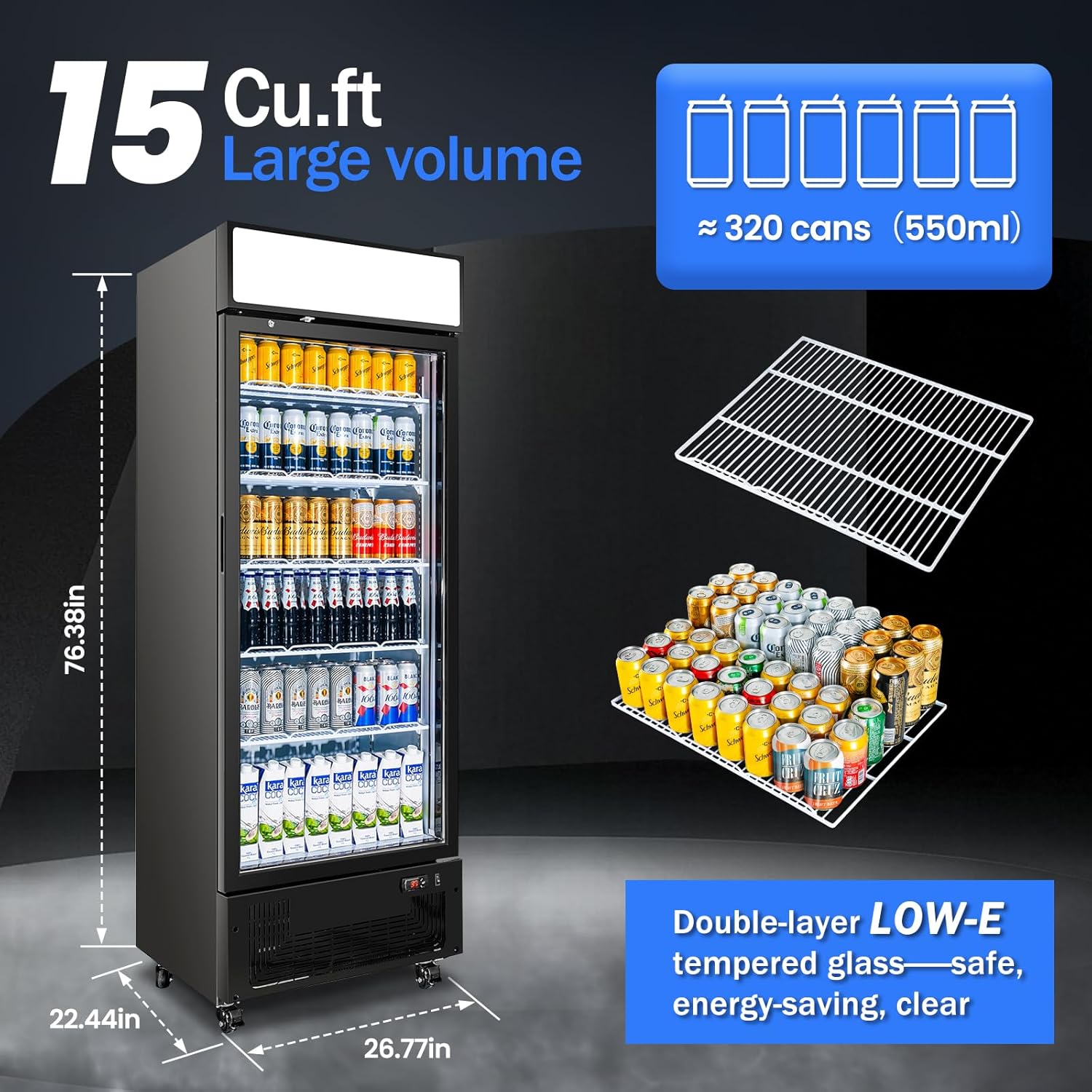- Large-capacity display refrigerator: Offering 15 Cu.Ft of storage space with reinforced adjustable shelves for maximum flexibility in organizing your merchandiser refrigerator
